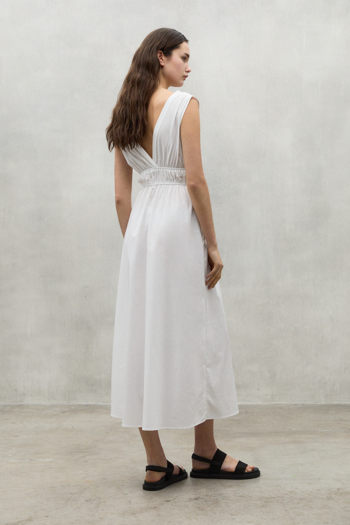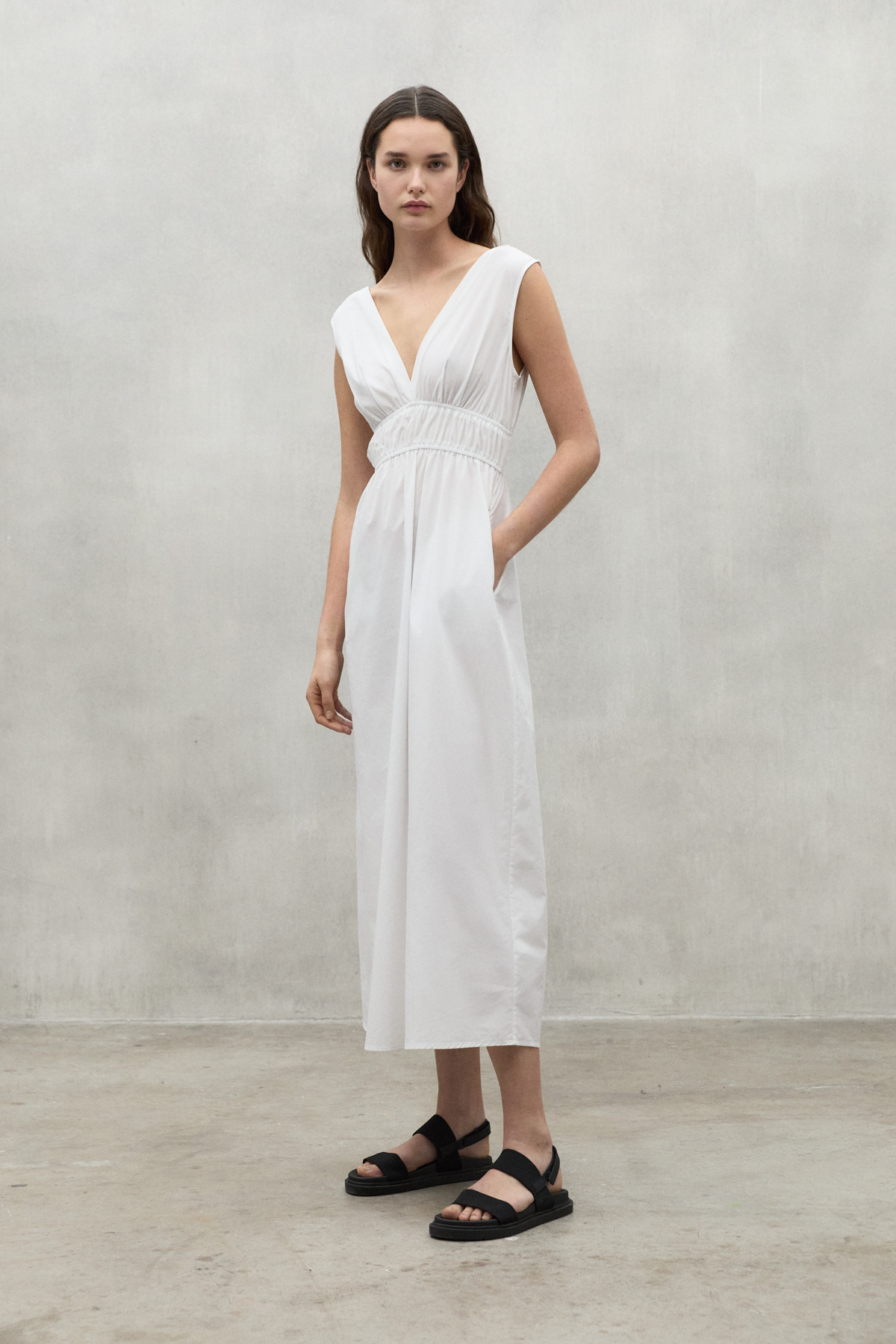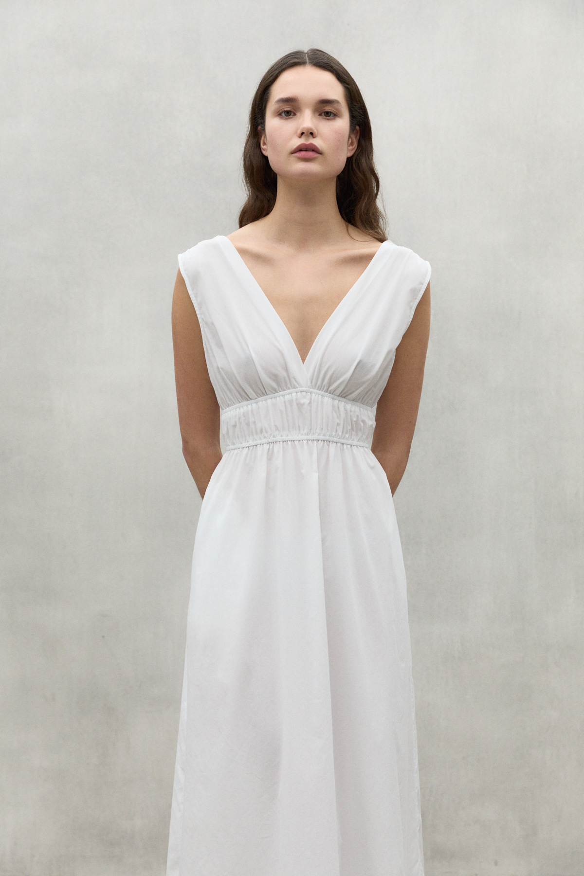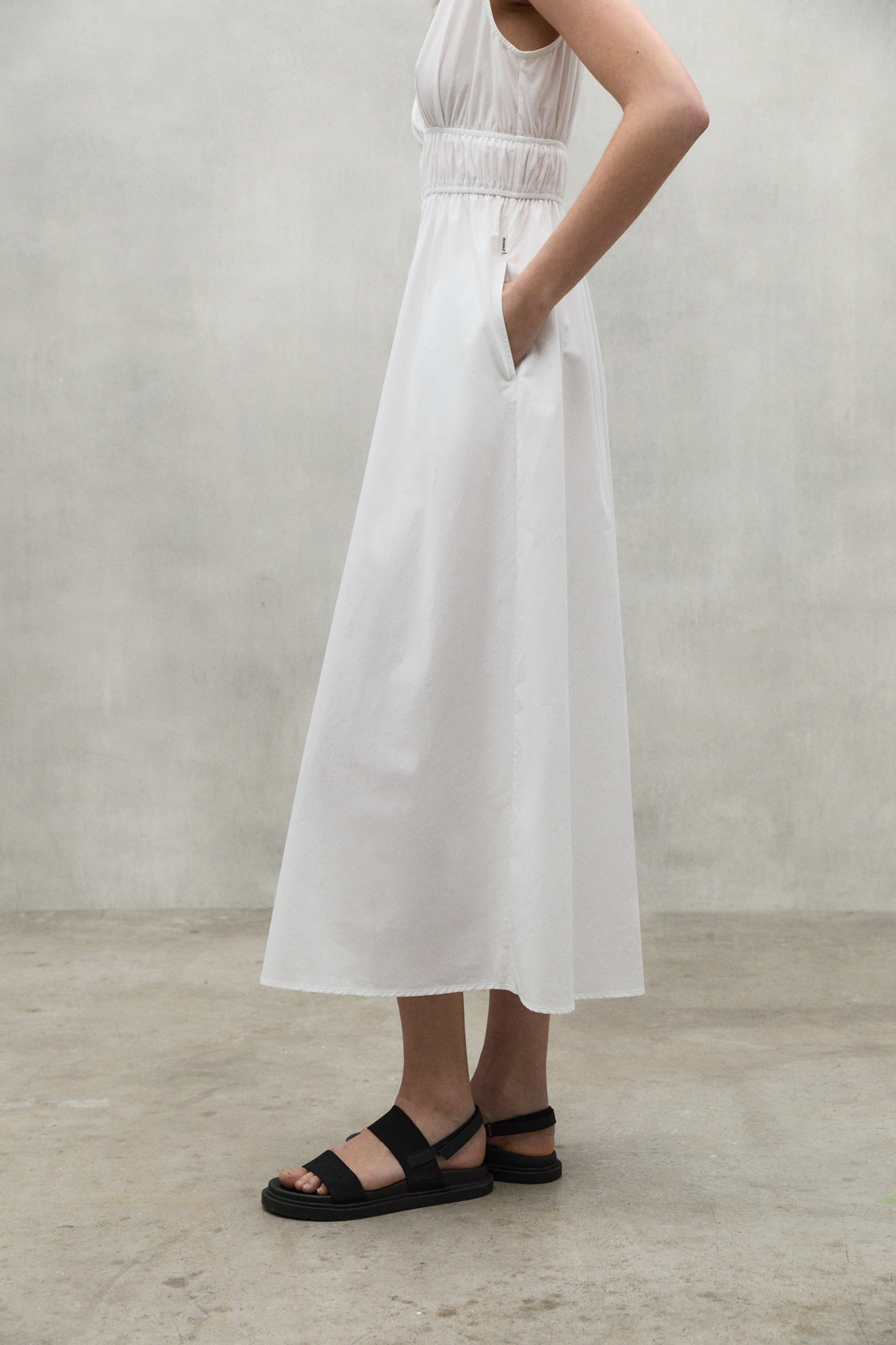 Bornite varrukateta kleit on valmistatud 50% looduslikult kasvatatud mahepuuvillast ja 50% TENCEL™ LYOCELL materjalist. See kiud on saadud sertifitseeritud jätkusuutlikult majandatud metsadest pärinevast puidutselluloosist ja seda toodetakse keskkonnasõbraliku tootmisprotsessiga. Äärmiselt mugav ja värske kleit, mis kohandub suurepäraselt kehaga.