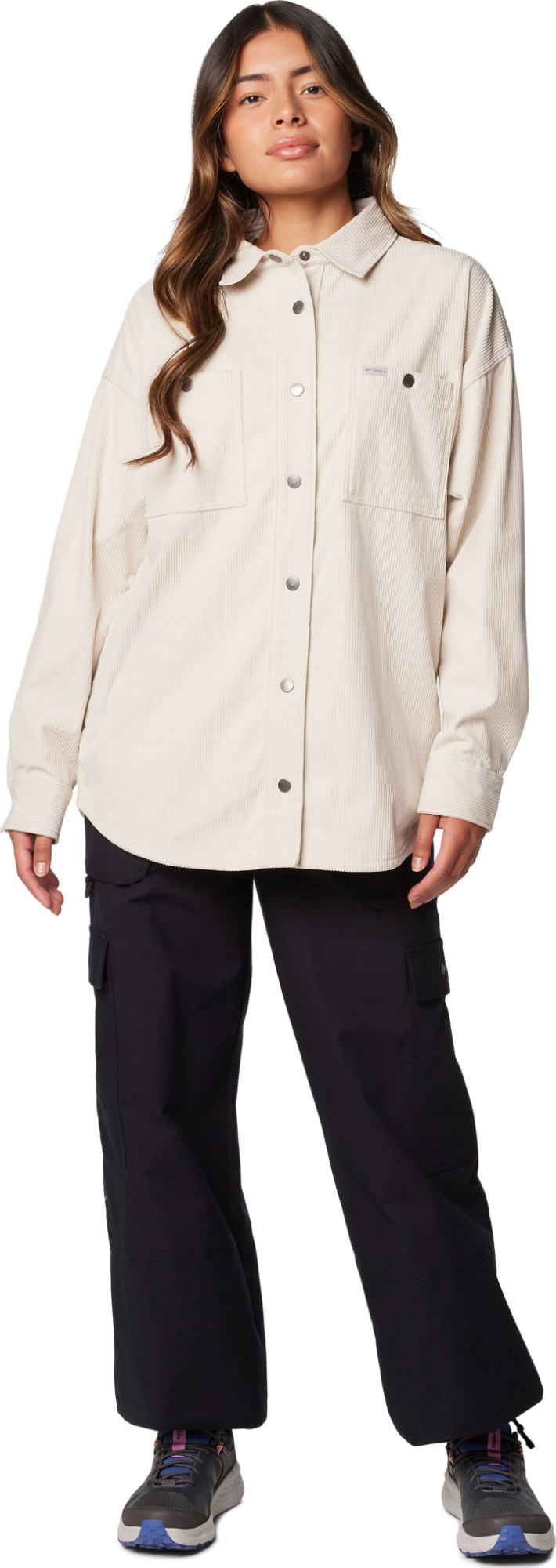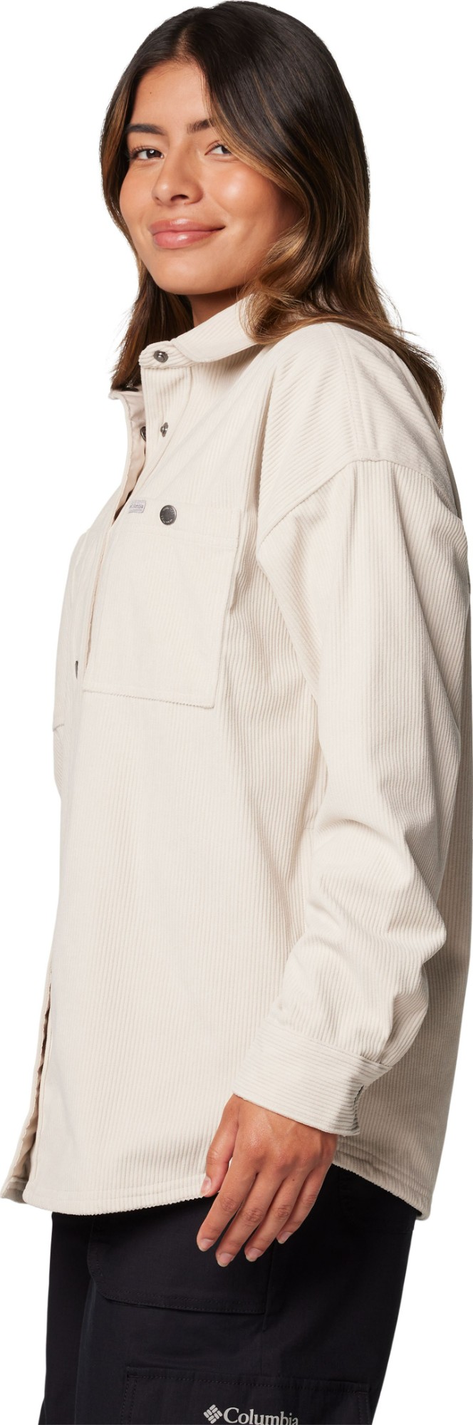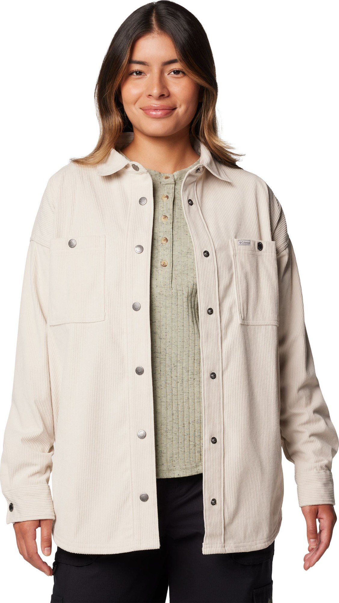 A comfortable corduroy shirt jacket that layers well on the trail and around town, with convenient chest pockets and a snap-front closure.