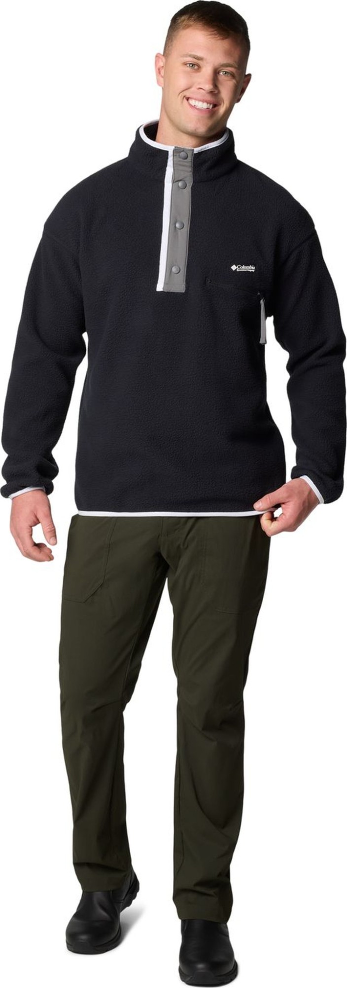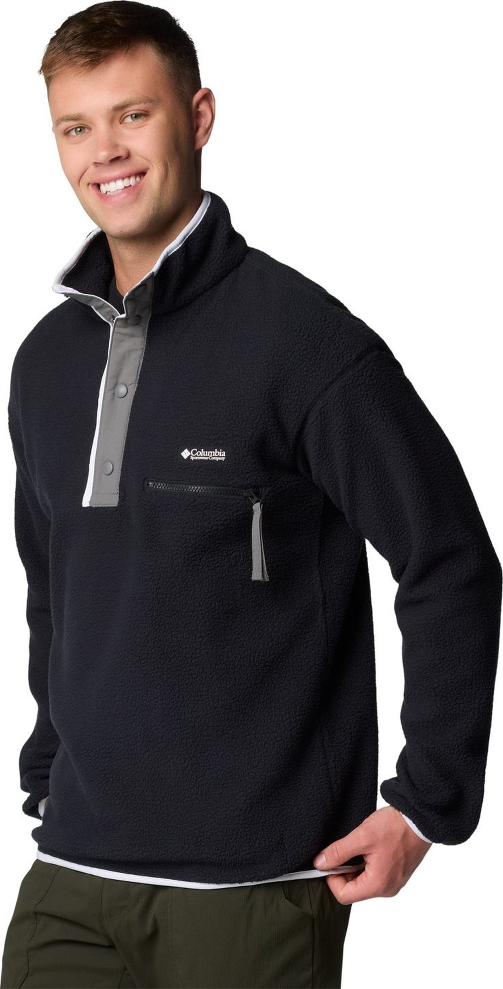 A classic for utility and style. Crafted of plush textured fleece to ward off chill, this snap-front pullover can be worn as a mid-layer or a sharp-looking outer layer on the trail and beyond.