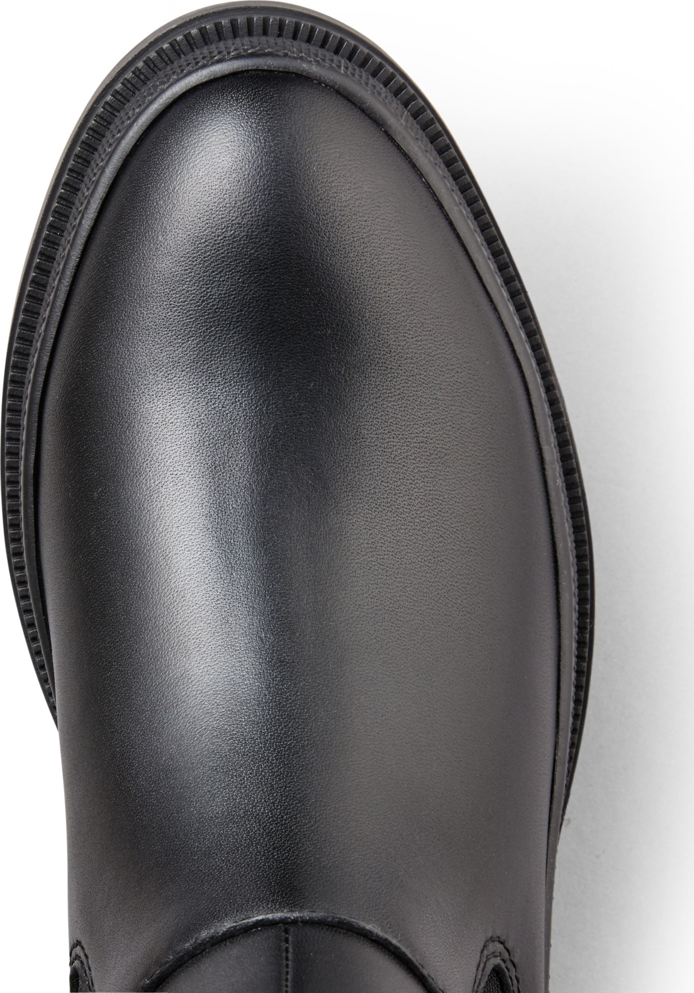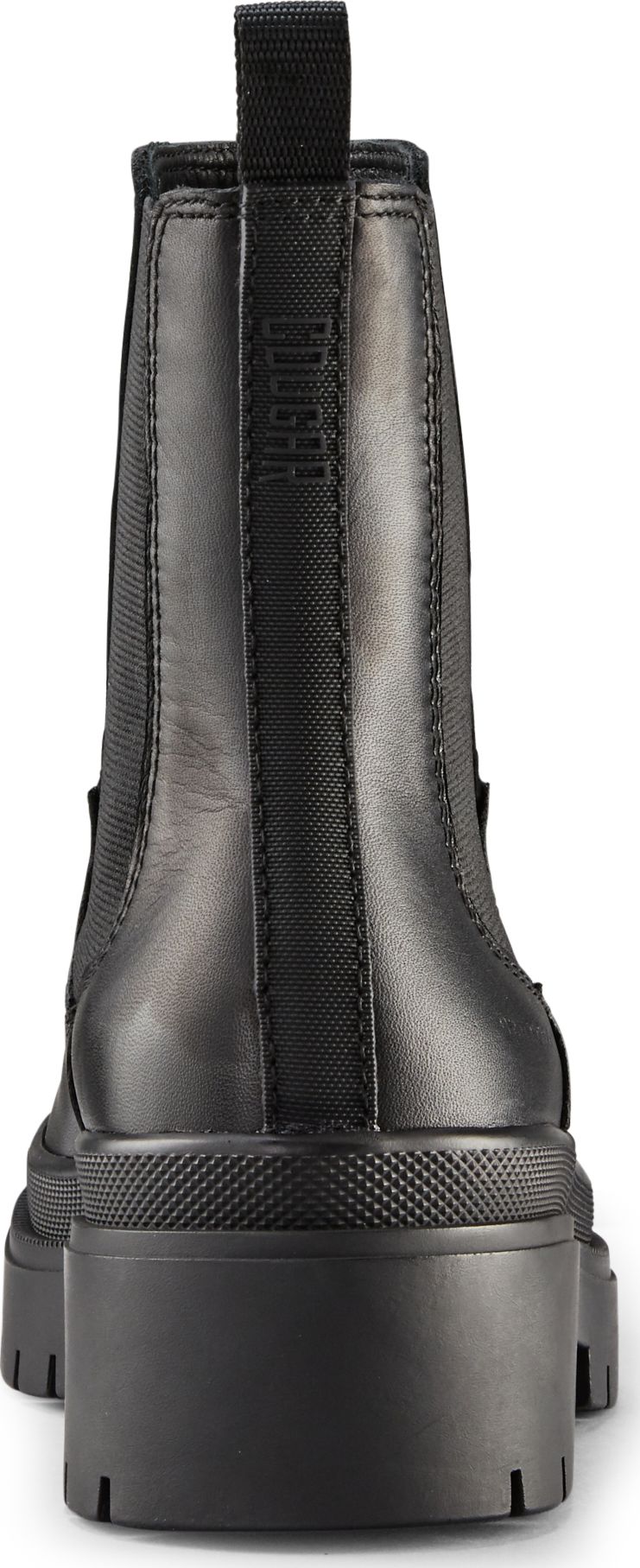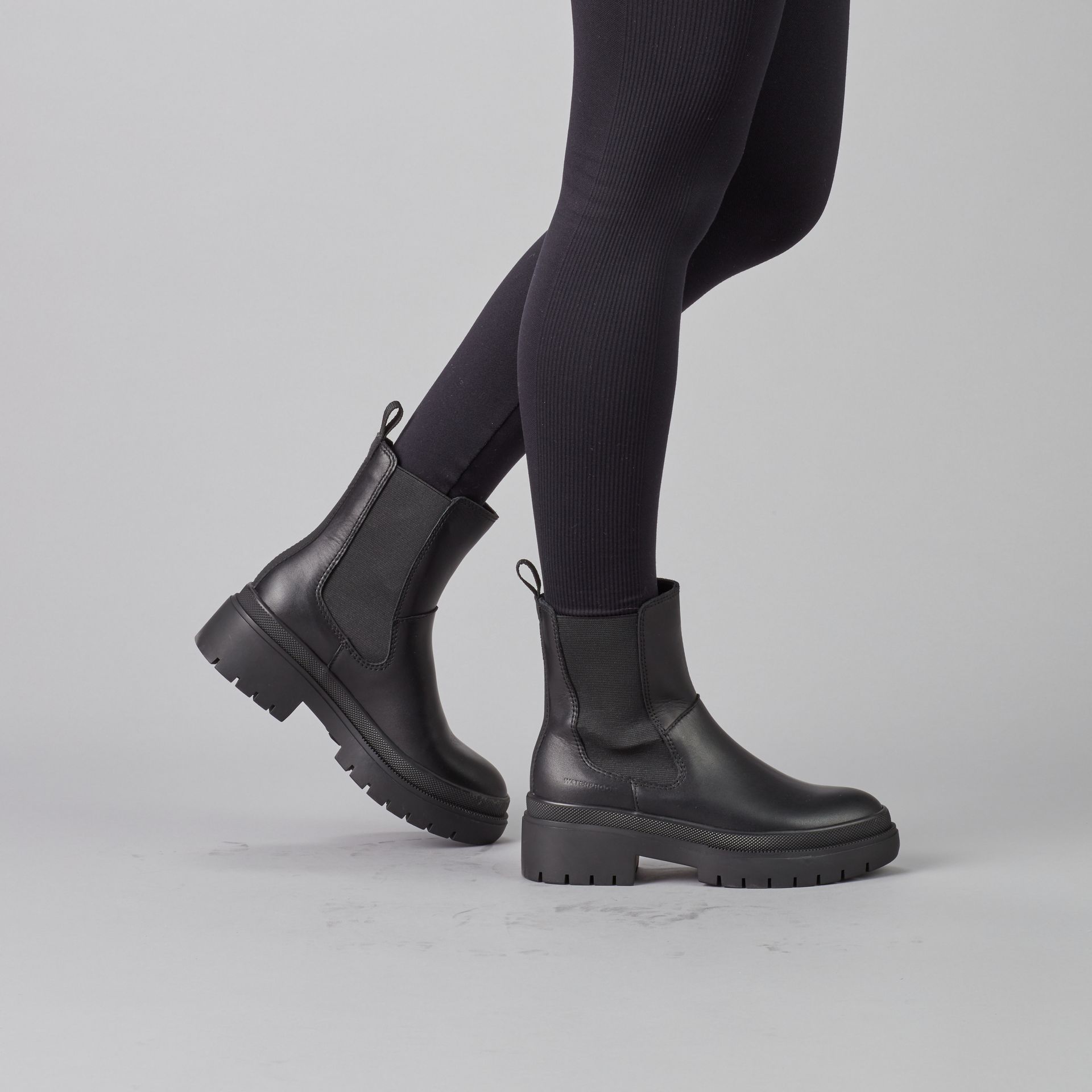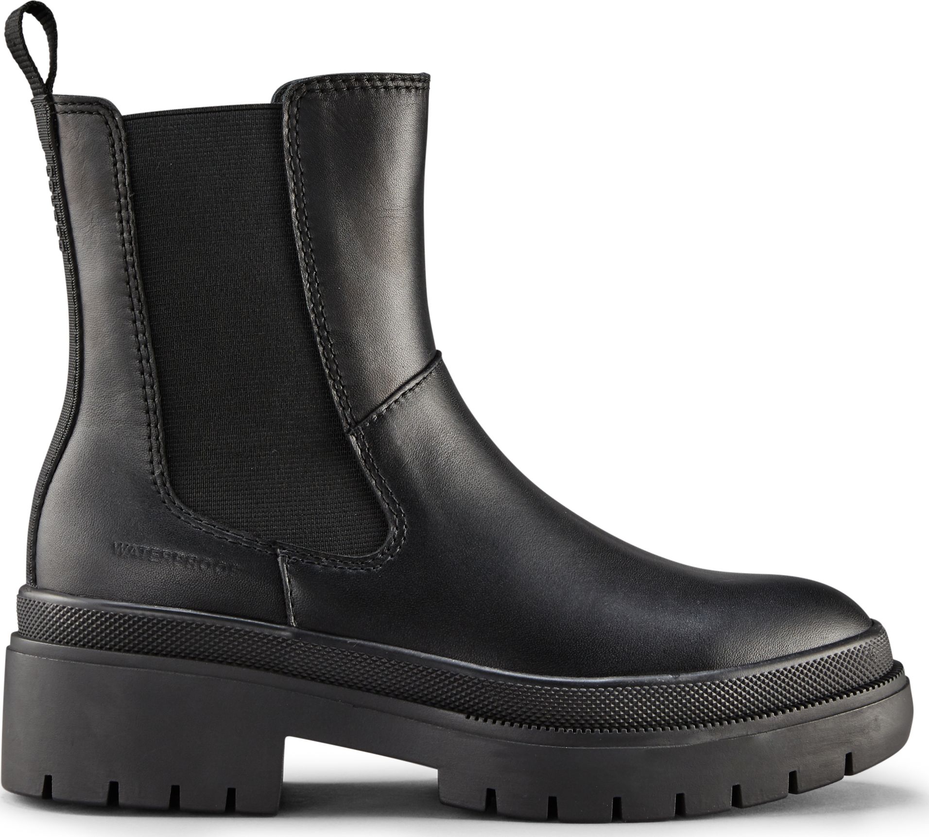 Mid-height leather chelsea boot. Rounded toe. Double elastic gore closure. Thermoplastic rubber outsole.
