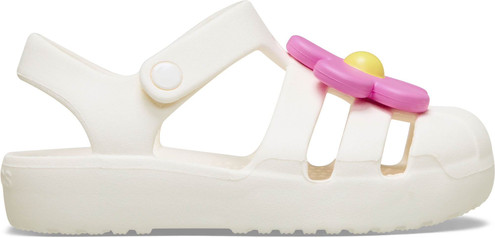 Meet our new Toddler Classic Fisherman Sandals! These casual sandals combine everything you love about Classic Clogs with the modern design of a fisherman's sandal. The upper features a toe cap and two adjustment points on the foot to keep kids secure—whether they're headed to the park or the pool. They also have holes for Jibbitz™ accessories so they can add personal style.