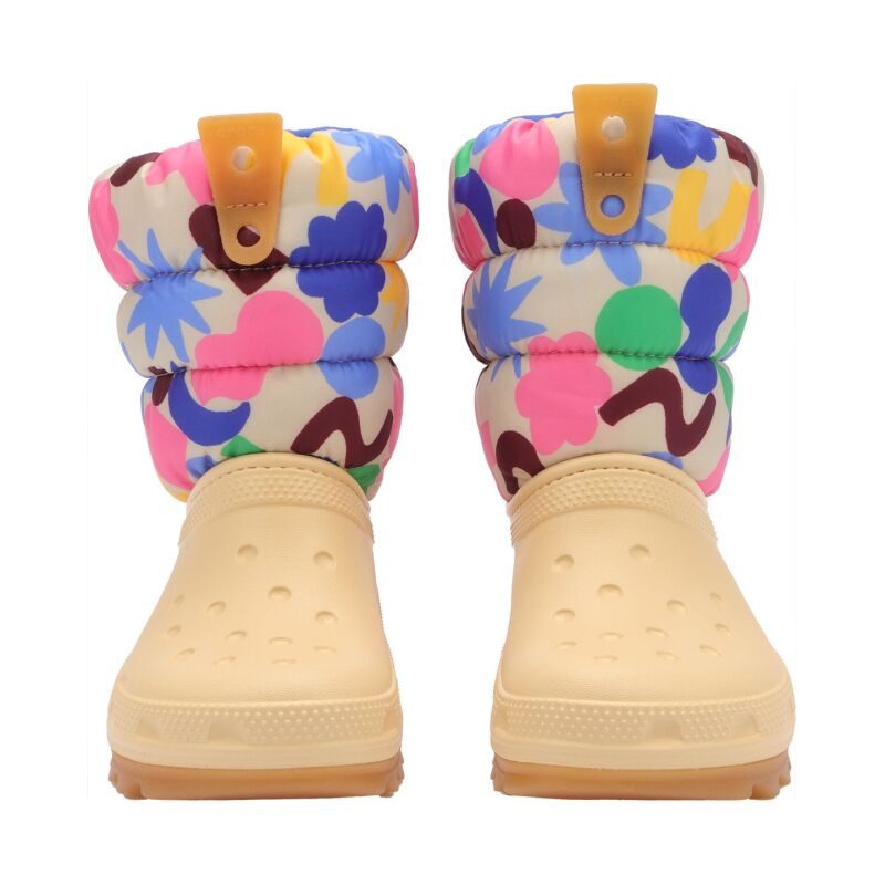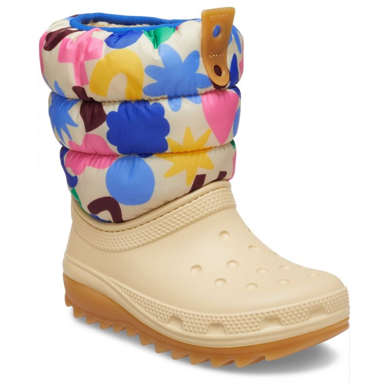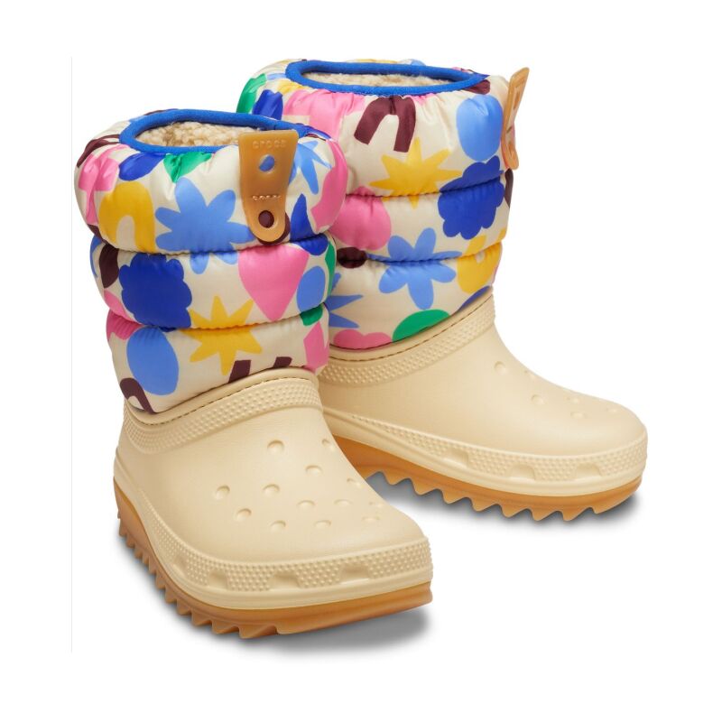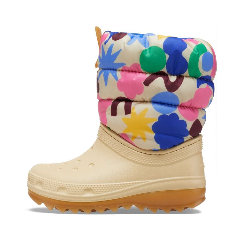 The Crocs Classic NeoPuff Geo Shapes Boot is the perfect choice for kids during the winter, delivering the comfort they love from Crocs. Made from lightweight Croslite™ material, it ensures ease and comfort throughout the fall and winter months, even in low temperatures. The soft, fuzzy lining keeps feet warm, while the elastic upper prevents water from getting in, keeping feet dry. Featuring a non-slip, flexible outsole for secure footing, this boot is ideal for keeping kids safe and comfortable during all their winter adventures.