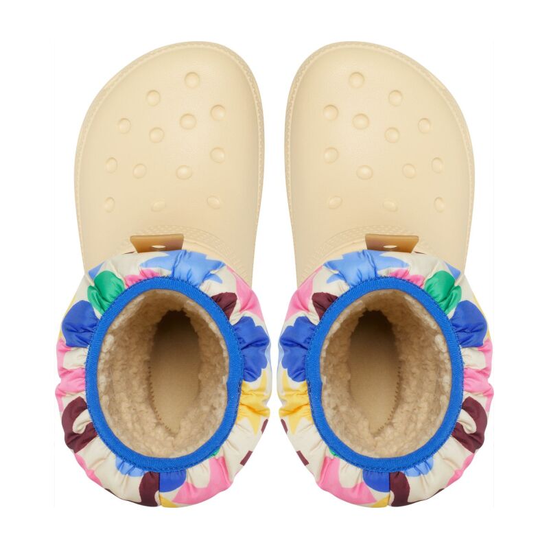 Crocs Classic NeoPuff Geo Shapes jalatsid on täiuslik valik lastele talvel, pakkudes Crocsi armastatud mugavust. See on valmistatud kergest Croslite™ materjalist, mis tagab kerguse ja mugavuse kogu sügise ja talve jooksul, isegi madalal temperatuuril. Pehme, kohev vooder hoiab jalad soojana, elastsed pealsed aga takistavad vee sissepääsu, hoides jalad kuivana. Tänu libisemisvastasele ja elastsele välistallale, mis hoiab jalad kindlalt maas, on see jalats ideaalne, et tagada laste turvalisus ja mugavus kõikidel talvistel seiklustel.