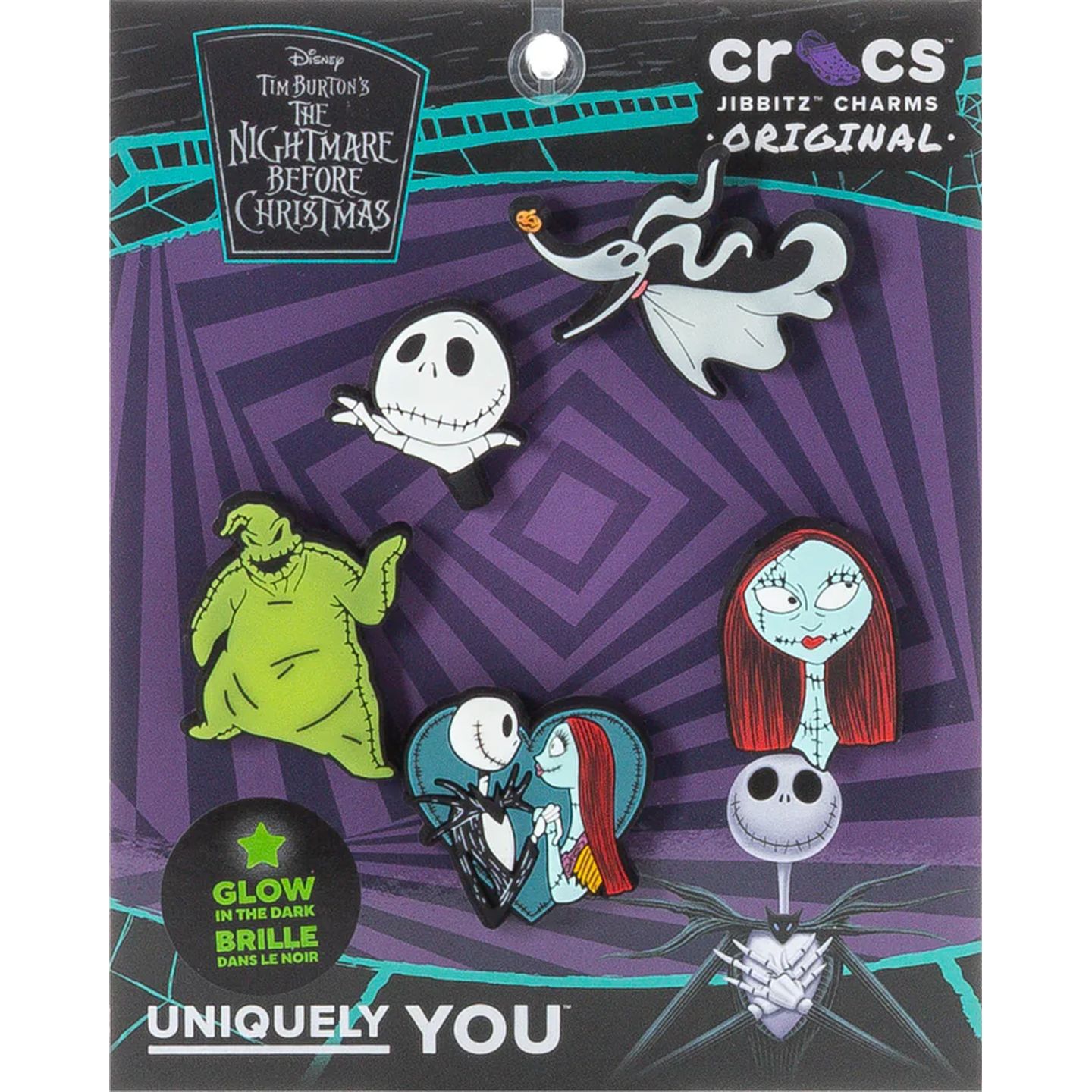 Add some spooky scare flair to your favorite pairs with this Disney Tim Burton’s The Nightmare Before Christmas 5 Pack of Jibbitz™ charms.