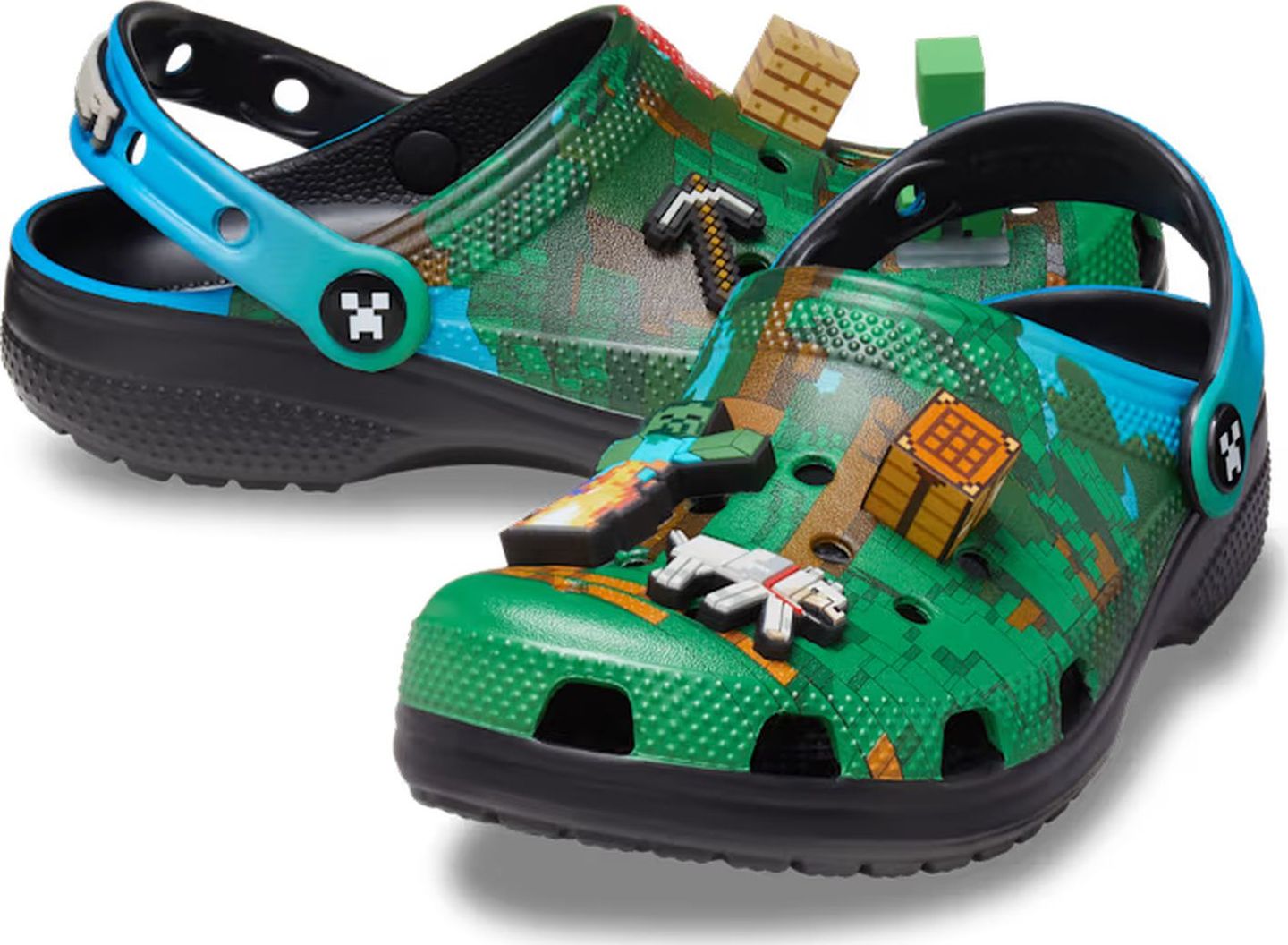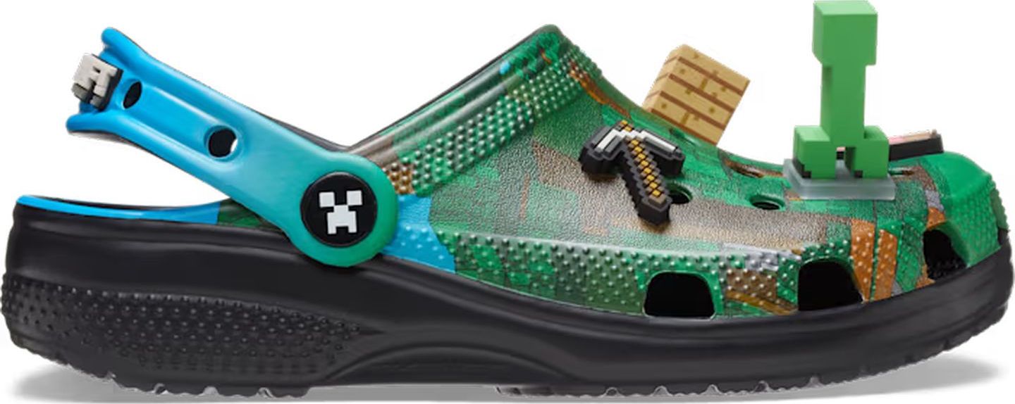 Help kids build their style one block...and Croc...at a time. In the Minecraft Classic Clog. Featuring an allover core print with exclusive Minecraft Jibbitz™ charms, they’ll have little ones ready to explore almost any terrain. Add a pair to their inventory.