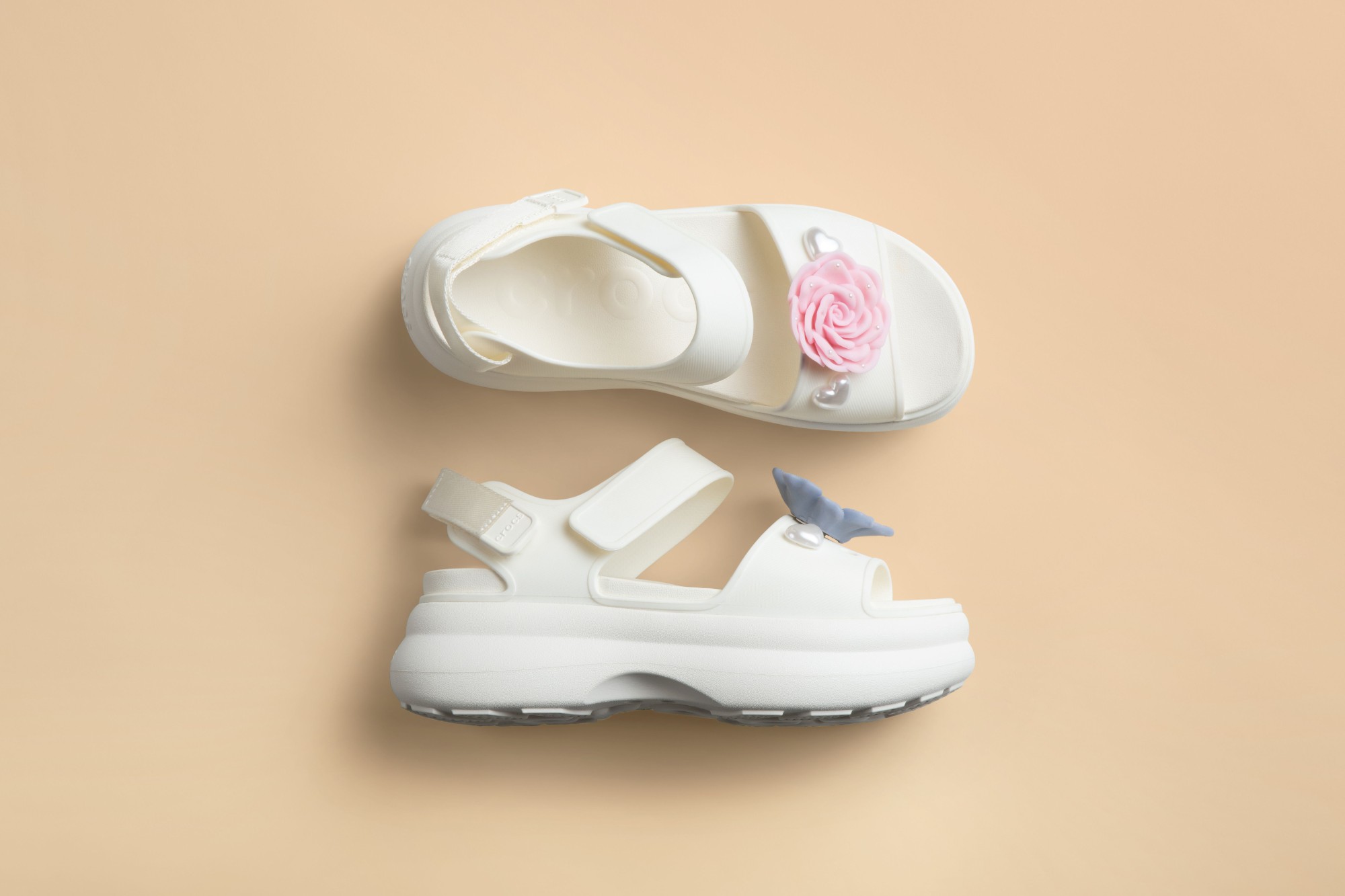 Customizable with Jibbitz™ charms on the front strap;
