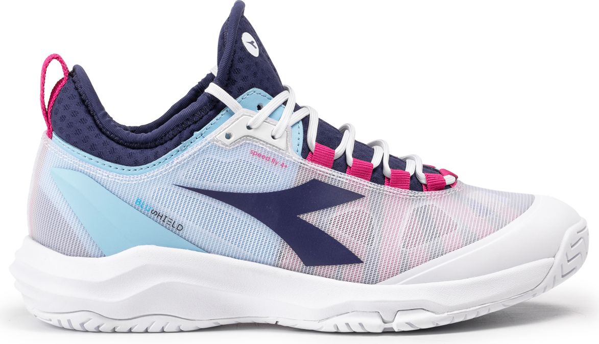Kiired mängijad, kes loevad, see king on teie jaoks! Speed Blushield Fly 4+ W AG on naiste tennisejalats, mis on mõeldud kiiretele mängijatele, kasutamiseks kõvadel pindadel või väljakul. Pealismaterjal on valmistatud SuprellTechist, õhulisest võrgust ja d-nahast, suurepärase stabiilsuse, hingavuse ja mugavuse tagamiseks, seest vooderdatud pehme, tekstuuriga, libisemiskindla lükraga. Eemaldatav, dnattivo sisetald; Vahetald kerge EVA ja kaare tugevdus stabiilsuse parandamiseks; Blushield tehnoloogia pöialuu juures. Kummist välistald spetsiaalse kulumiskindla Duratech 5000 koostisega.