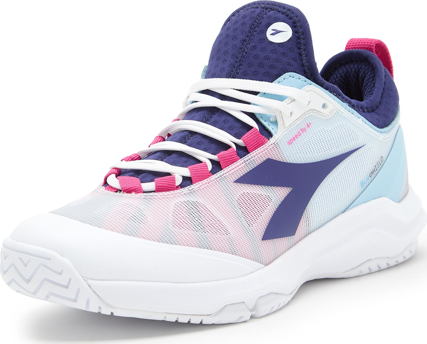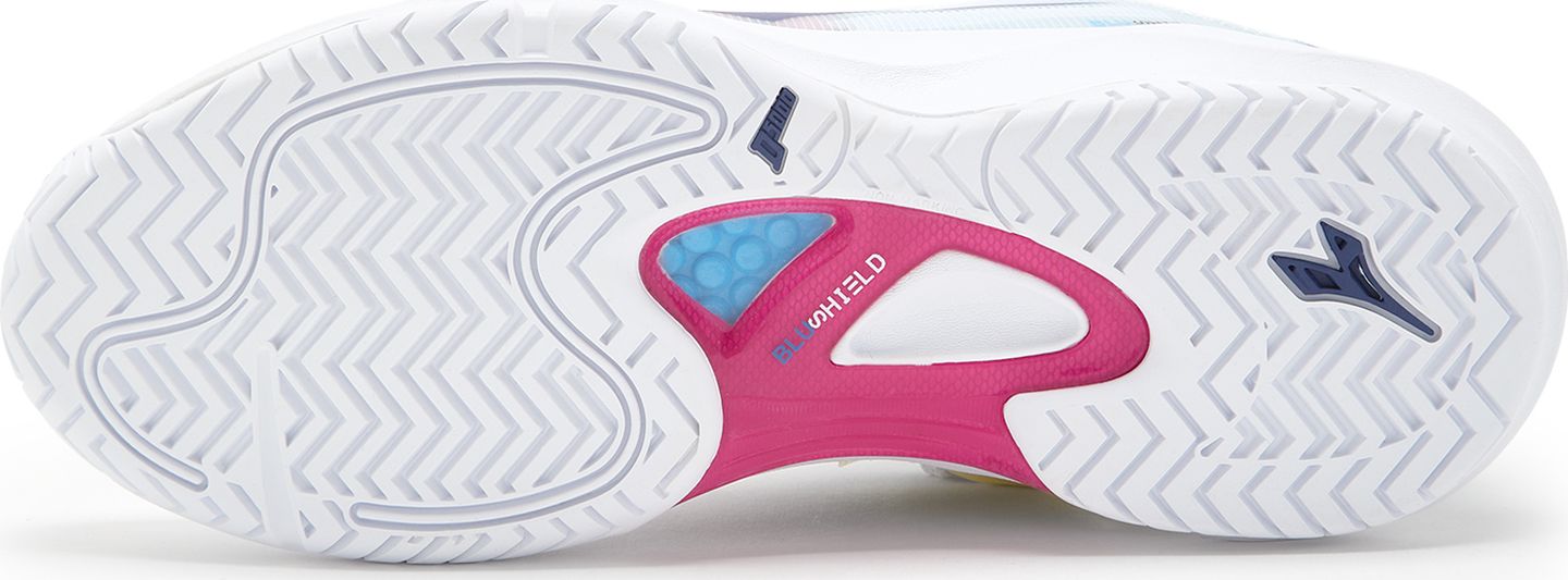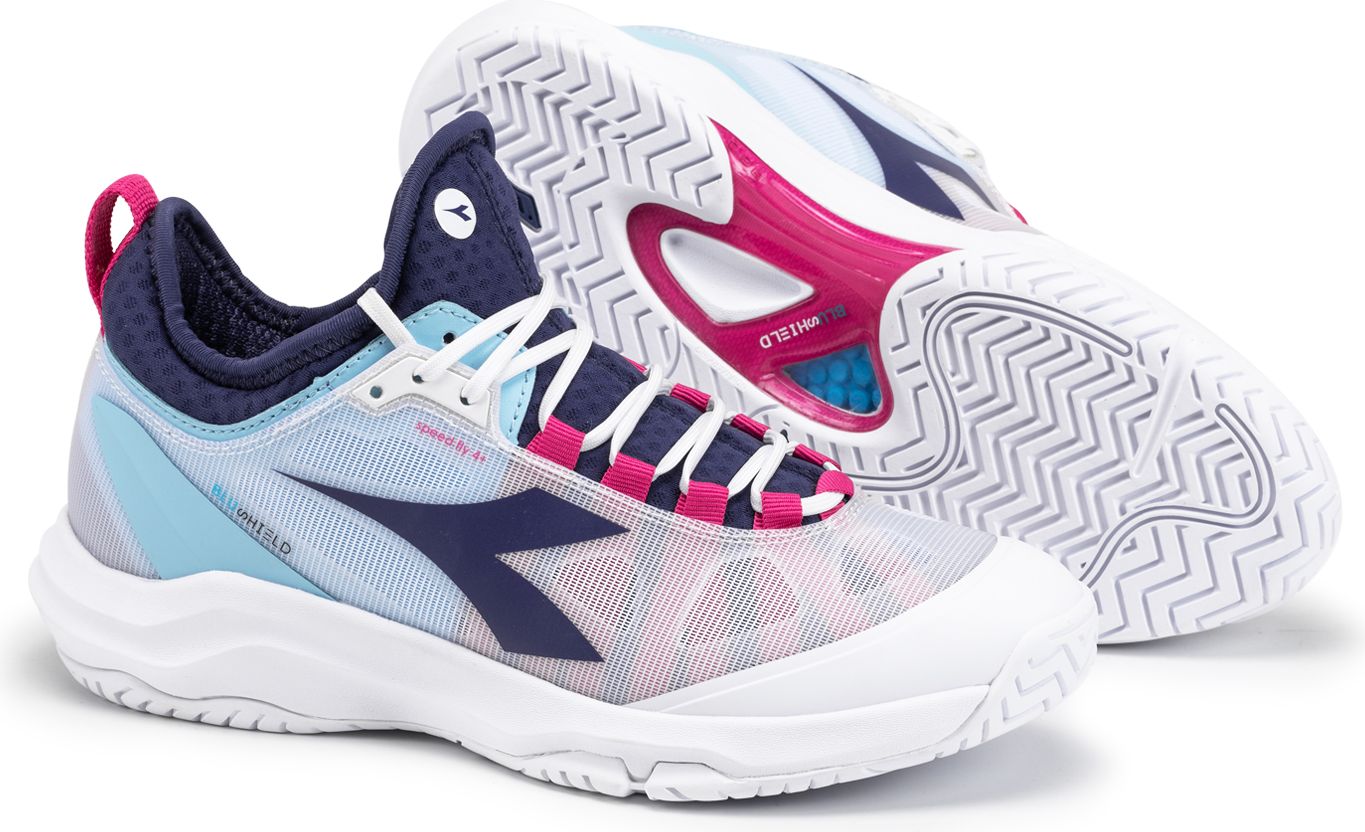 Fast players reading, this shoe is for you! Speed Blushield Fly 4+ W AG is the women’s tennis shoe purposely designed for quick players, for an use on hard surfaces or clay. Upper made of SuprellTech, air mesh and d-skin, for excellent stability, breathability and comfort, lined with soft, textured, non-slip lycra inside. Removable, dnattivo insole; midsole of light EVA and arch reinforcement to improve stability. Outsole of rubber with special wear-resistant Duratech 5000 compound.