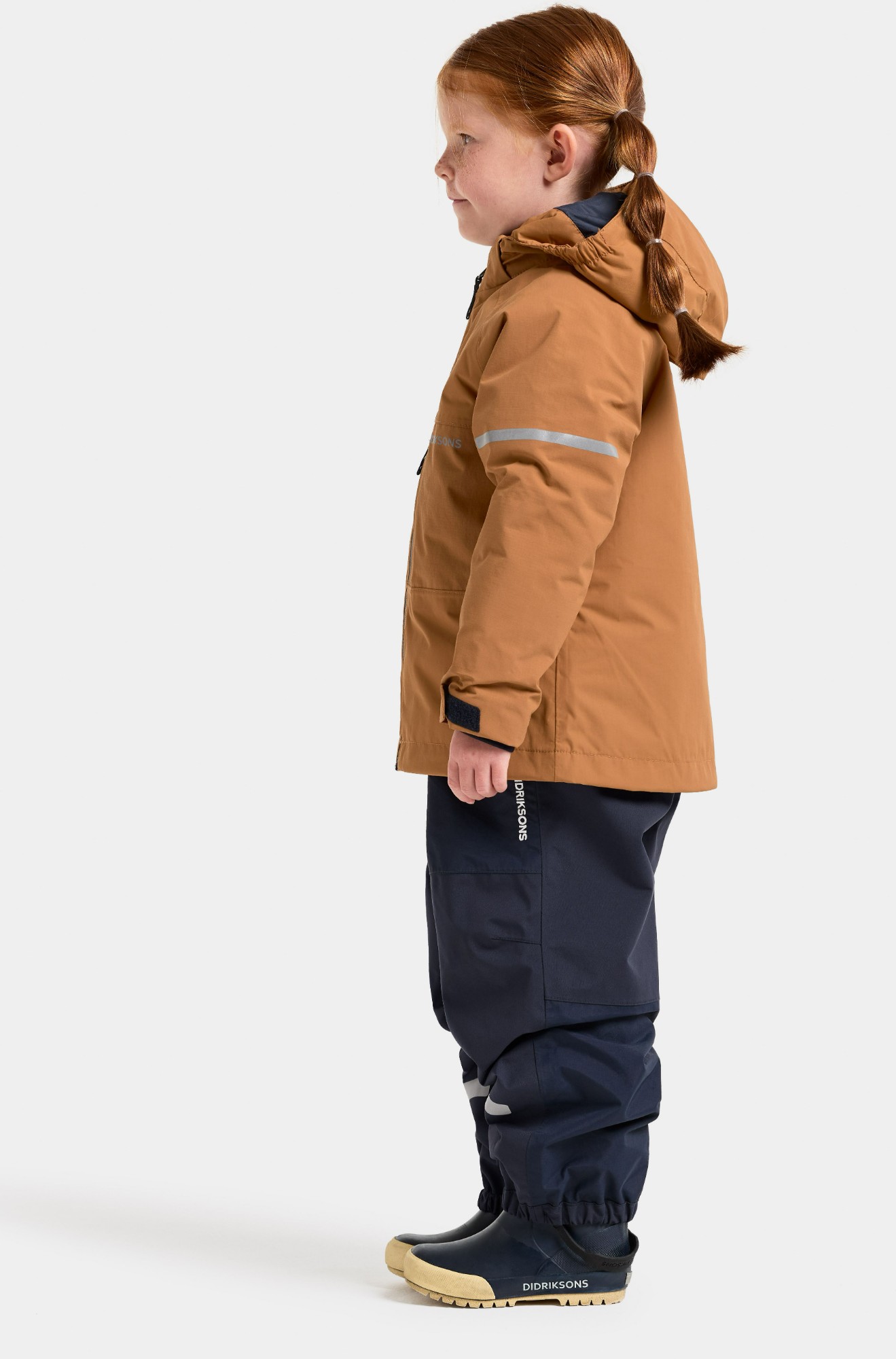 Laste Didriksons rõivad on valmistatud elastsetest, veekindlatest ja hingavatest kangastest — need lasevad vabalt liikuda, hoiavad kuivana ja sooje ka vihmastel päevadel.