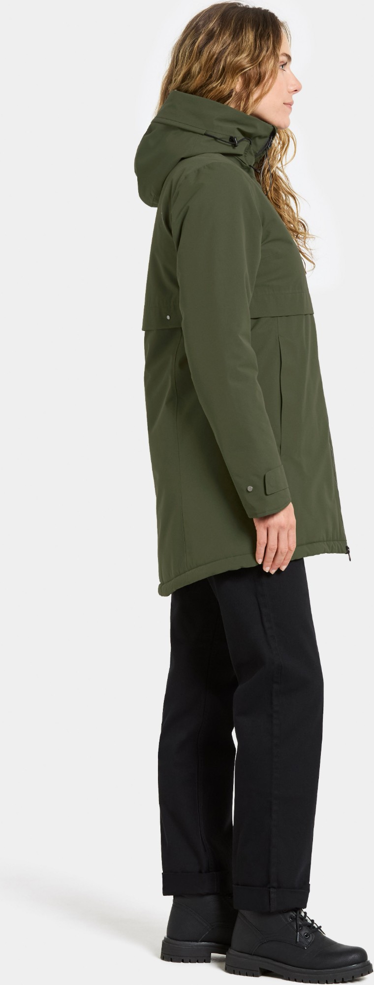 The Helle parka is a stylish and functional jacket for women, designed for comfort and protection during outdoor activities. The distinctive yoke detail on the chest and back gives it a unique, modern look. Fully water- and windproof with taped seams and made from a breathable material, it offers reliable protection in all weather conditions. It features a two-way front zip for flexible ventilation, and adjustable cuffs with buttons for a custom fit. The fixed hood can be adjusted for added protection against the elements. Practical details include zipped side pockets, an inner mesh pocket, and an additional inner zip pocket for secure storage. The collar is designed so the zip never rests directly against the chin, ensuring extra comfort.