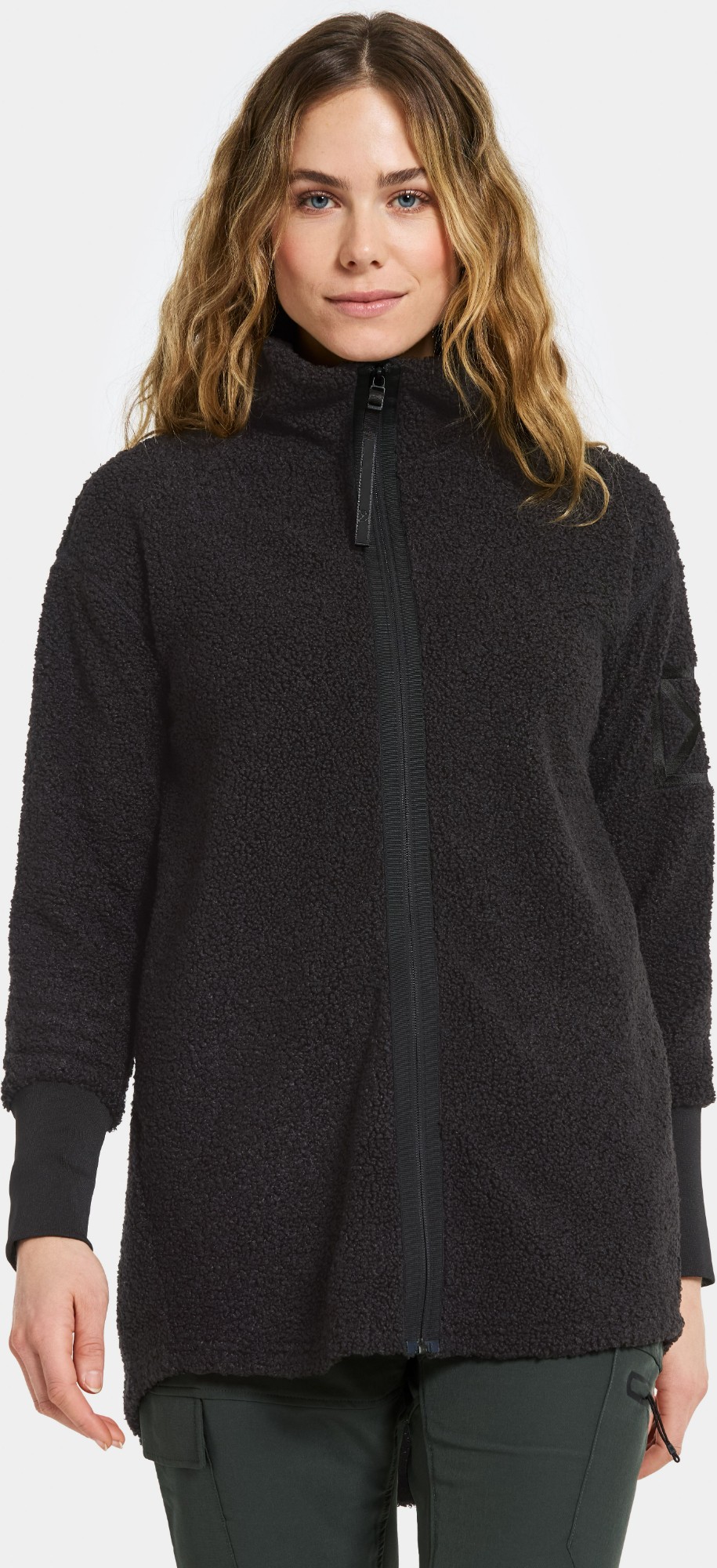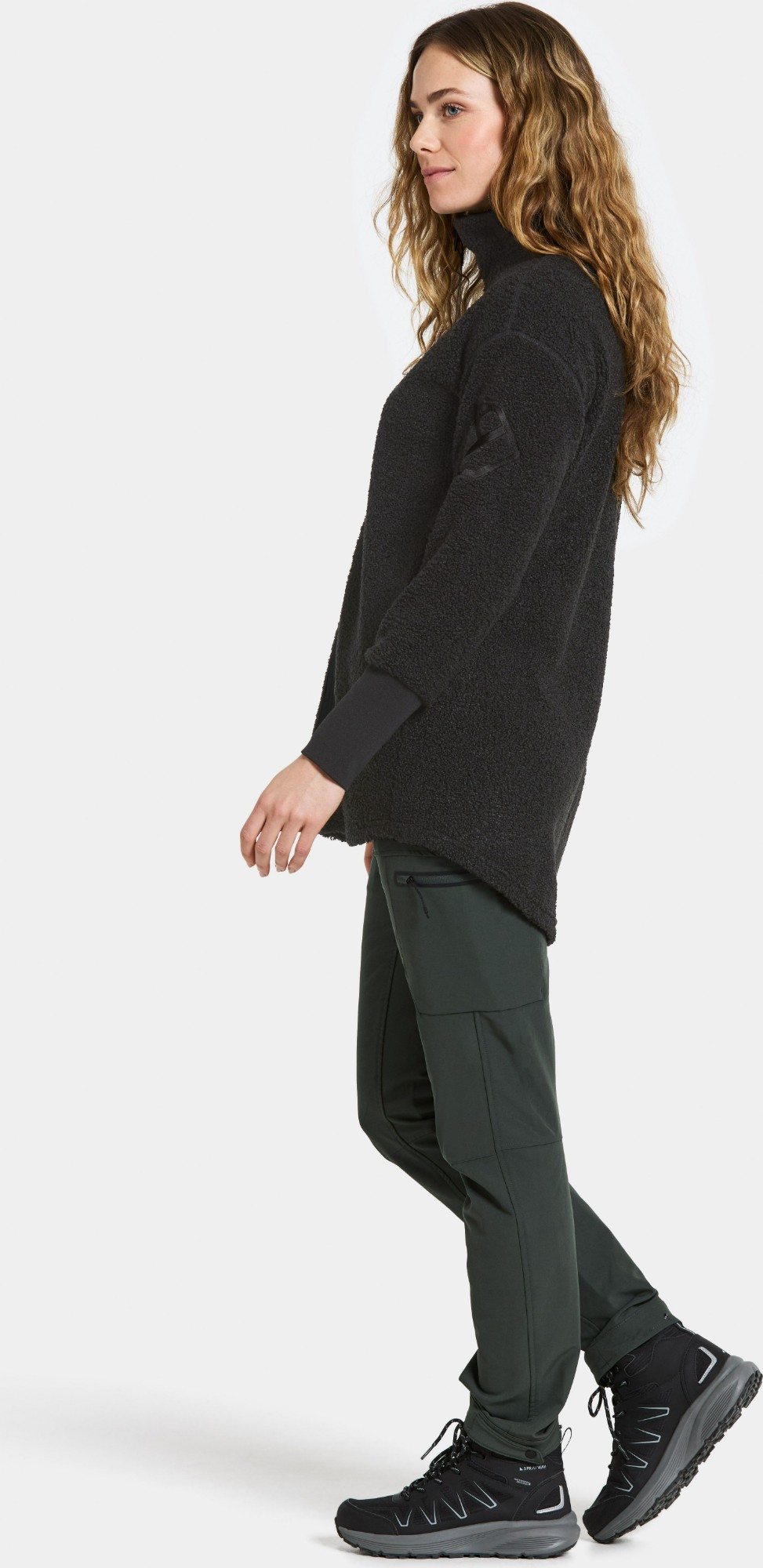 Sally is a soft and comfortable full-zip jumper made from pile fabric, perfect for layering on chilly days. It features a stand-up collar and elasticated cuffs for extra comfort. The jumper includes a front zip closure and practical side pockets for storage. Thanks to its 4-way stretch materials and flatlock seams, it offers flexibility and a smooth fit, ideal for both everyday wear and outdoor activities.