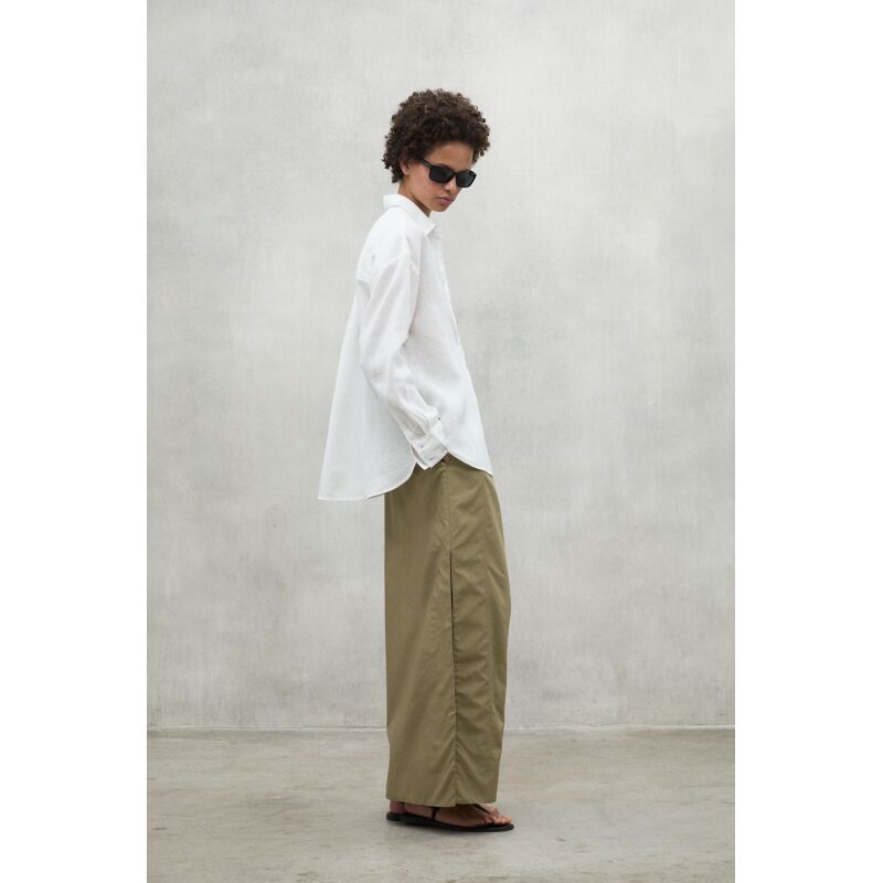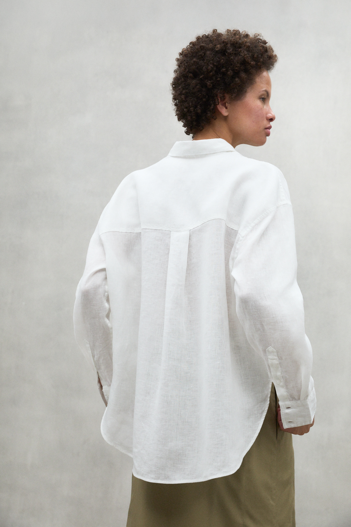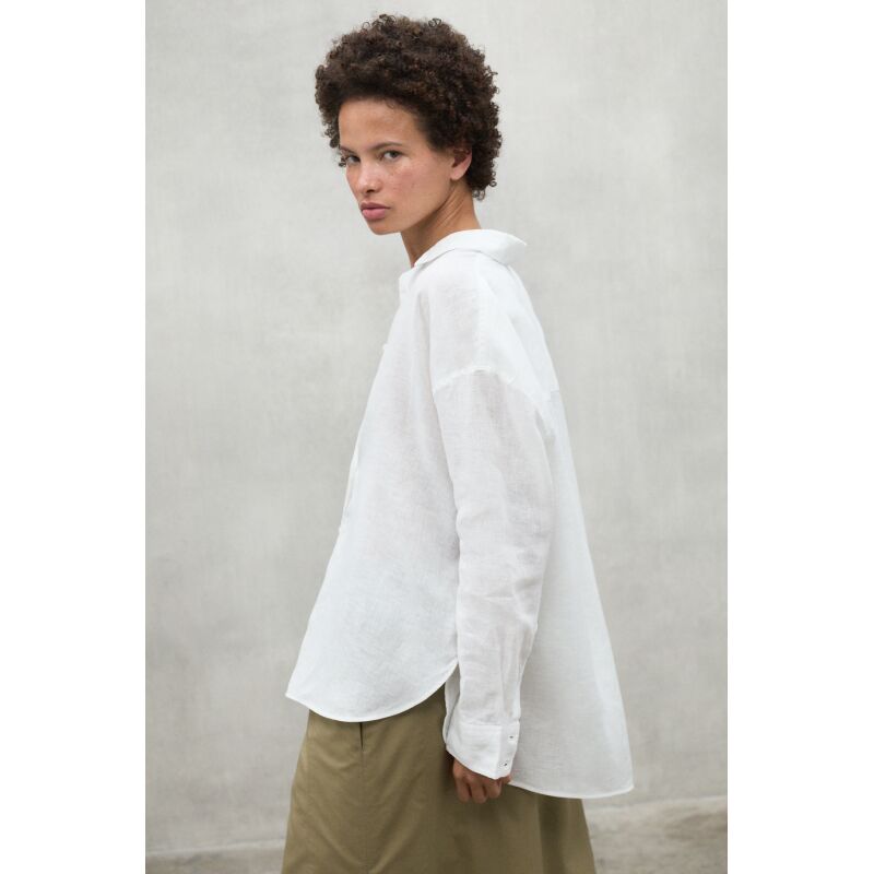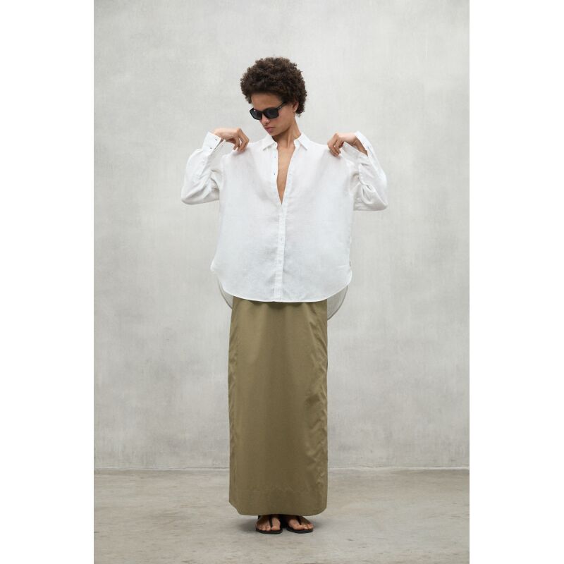 The Daria shirt, made of 20% recycled linen. The minimal impact that flax has on the environment makes it an outstanding choice. Flax requires much less water and pesticides than other crops and it is also biodegradable. Its design makes it the perfect shirt to combine depending on the occasion, adding a touch of style and versatility to your wardrobe.