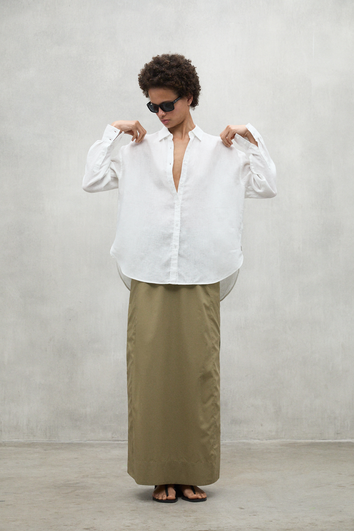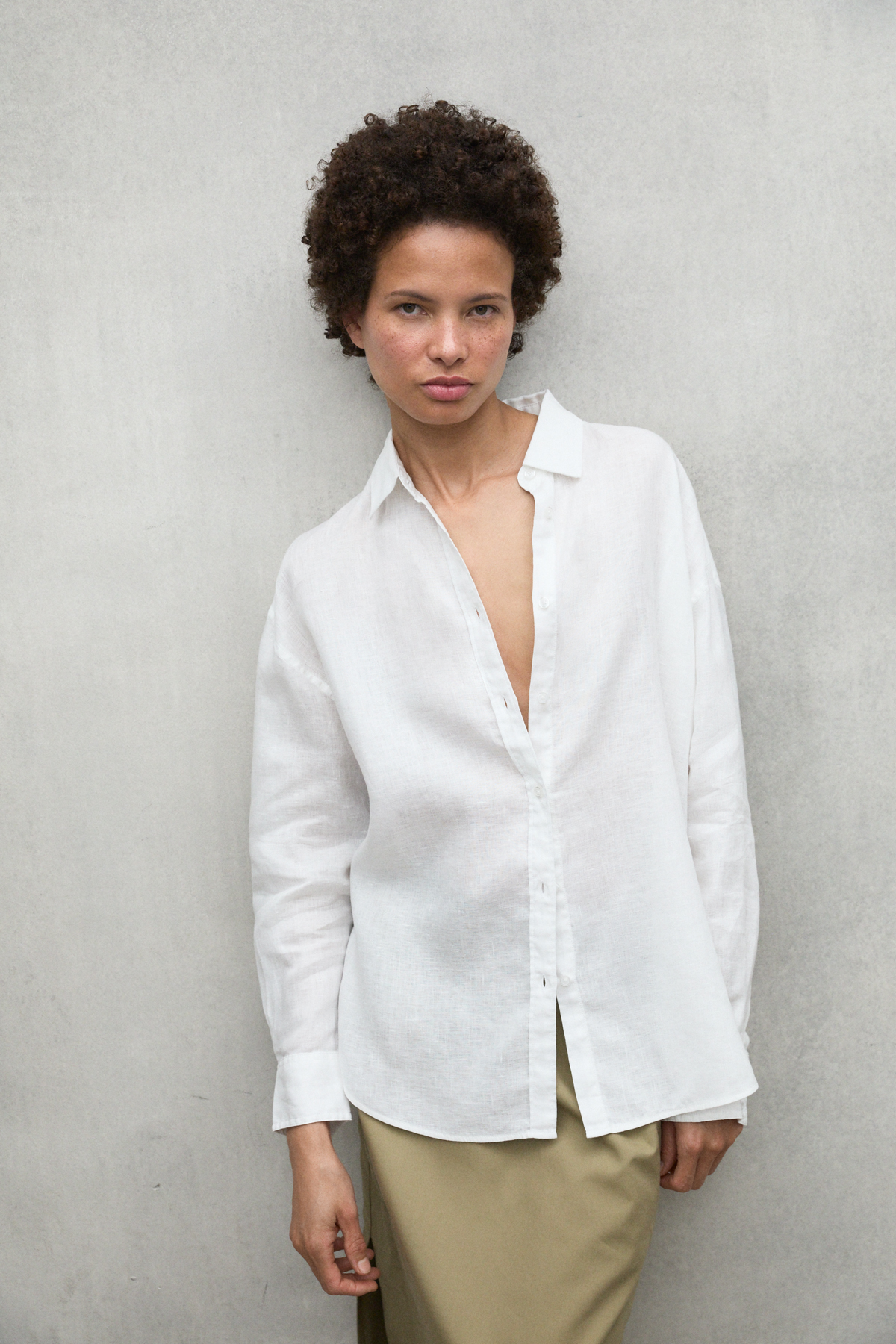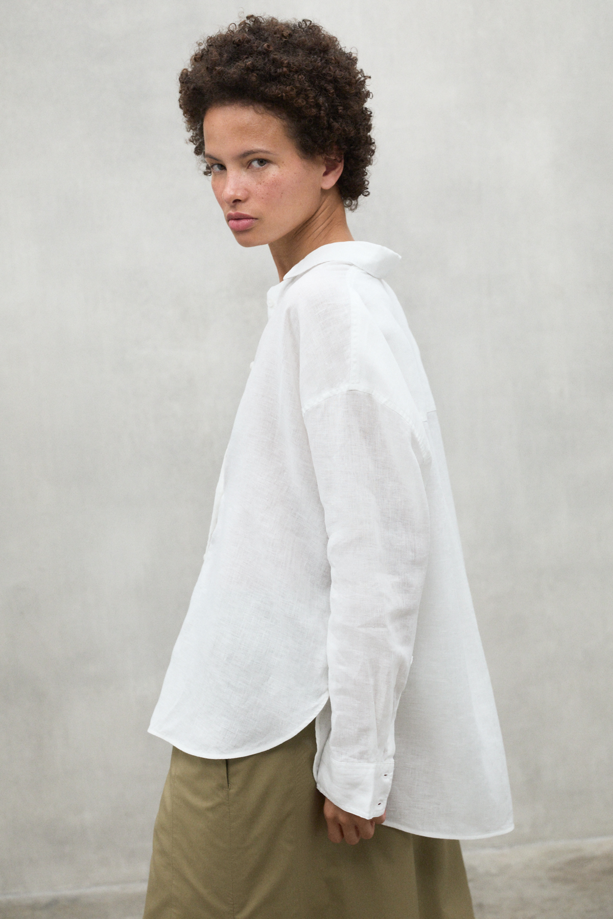 The Daria shirt, made of 20% recycled linen. The minimal impact that flax has on the environment makes it an outstanding choice. Flax requires much less water and pesticides than other crops and it is also biodegradable. Its design makes it the perfect shirt to combine depending on the occasion, adding a touch of style and versatility to your wardrobe.