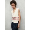 The Kentia sweater, made of 50% recycled cotton, has a regular fit that adapts to your body. Its sleeveless design and side slits make it perfect for summer.