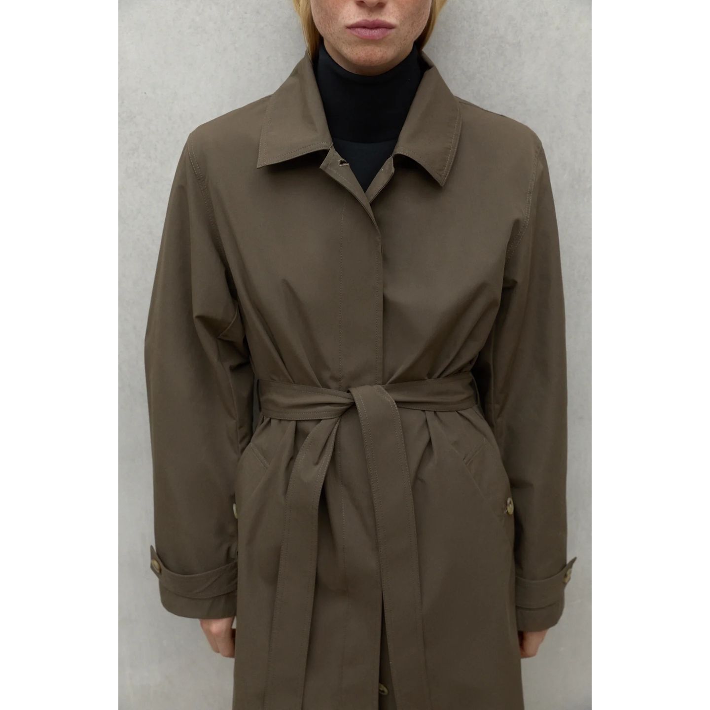 Taga jope on valmistatud 54% ümbertöödeldud polüestrist ja 46% mahepuuvillast, kahest jätkusuutlikust materjalist, mis toetavad ringmajandust. Jope on vetthülgav ja seda saab vöö abil taljeosas reguleerida; väga elegantne ja ajatu rõivaese.