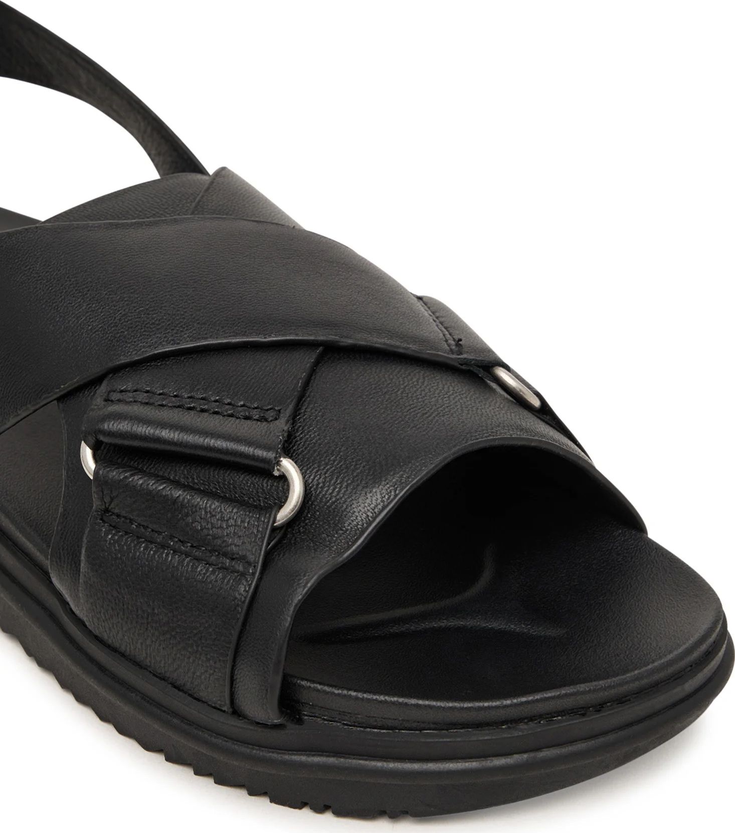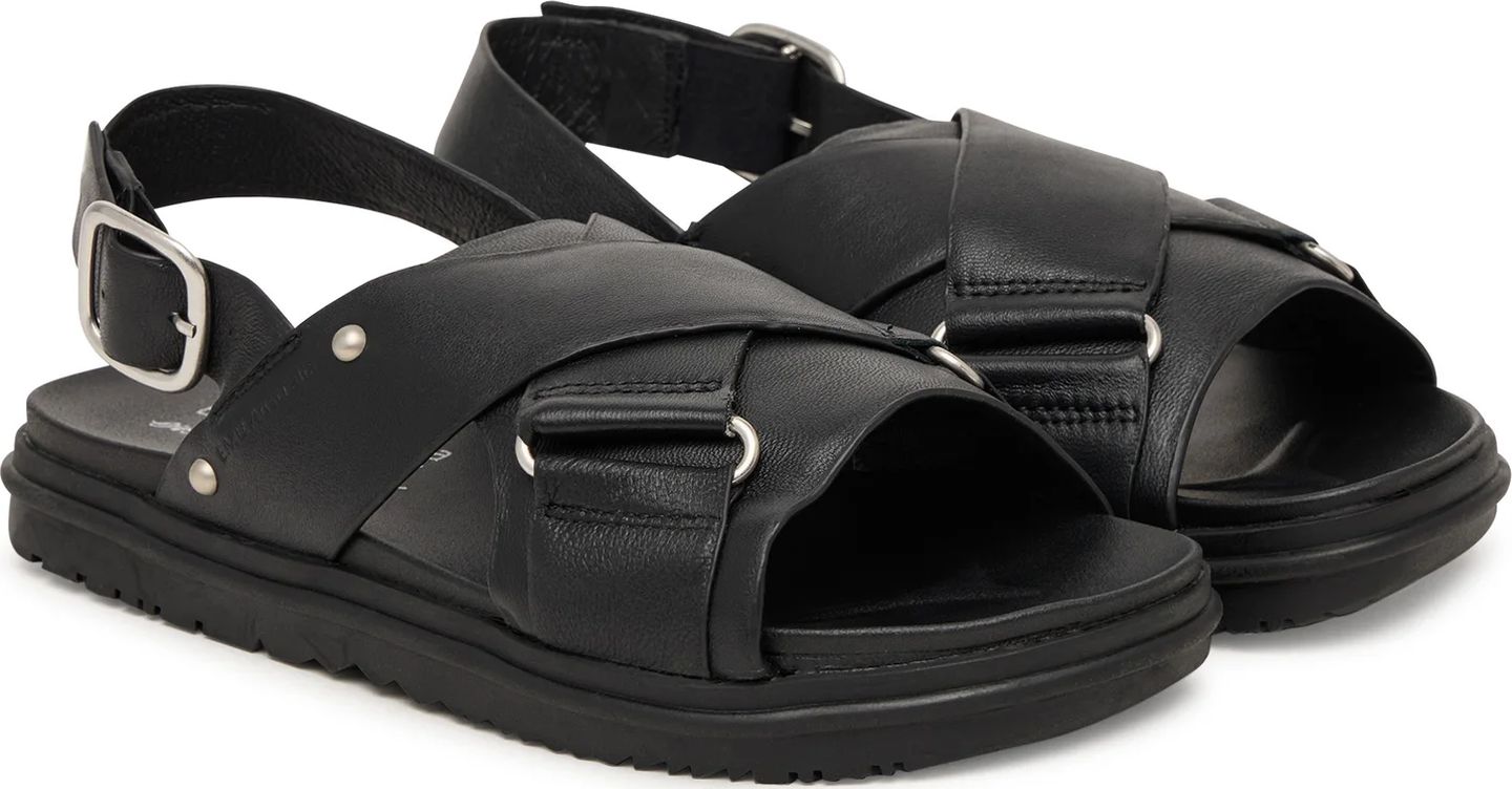 Vaevatu stiil kohtub läbimõeldud detailidega nendes nahast ristuvate rihmadega sandaalides. Pehme nahk ümbritseb jalga mugavalt, samas kui reguleeritava pandlaga kannarihm tagab kindla istuvuse ja lisab viimistletud metallise aktsendi. Vastupidav tald ja pehme sisetald pakuvad mugavust, tasakaalustades tagasihoidliku stiili ja praktilisuse päikeselisteks päevadeks, mil vajad kergeid ja mitmekülgseid jalatseid.