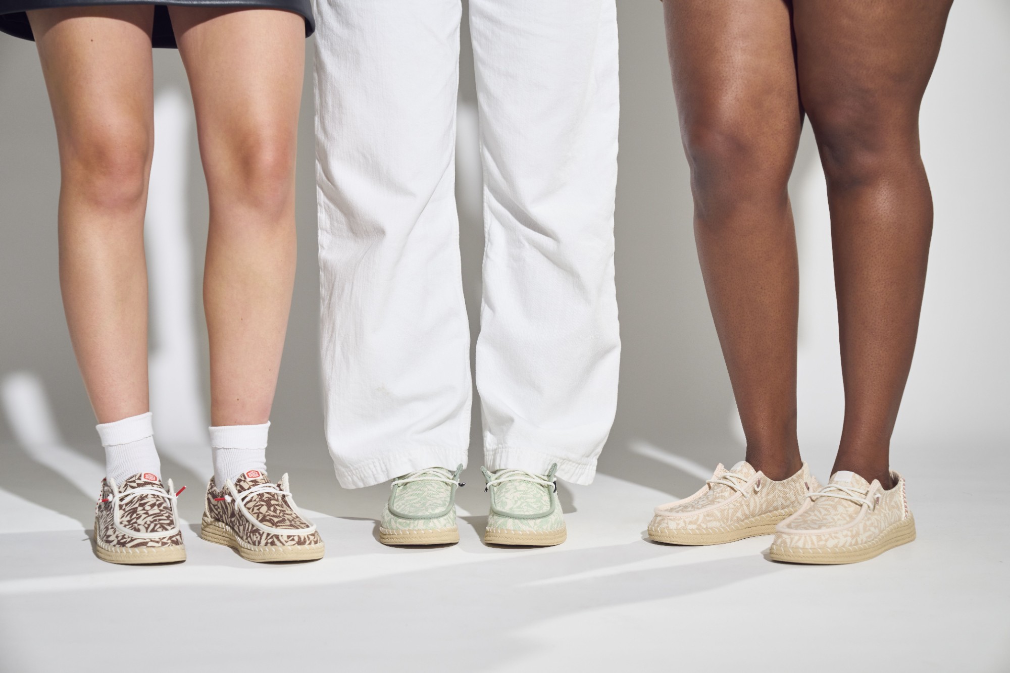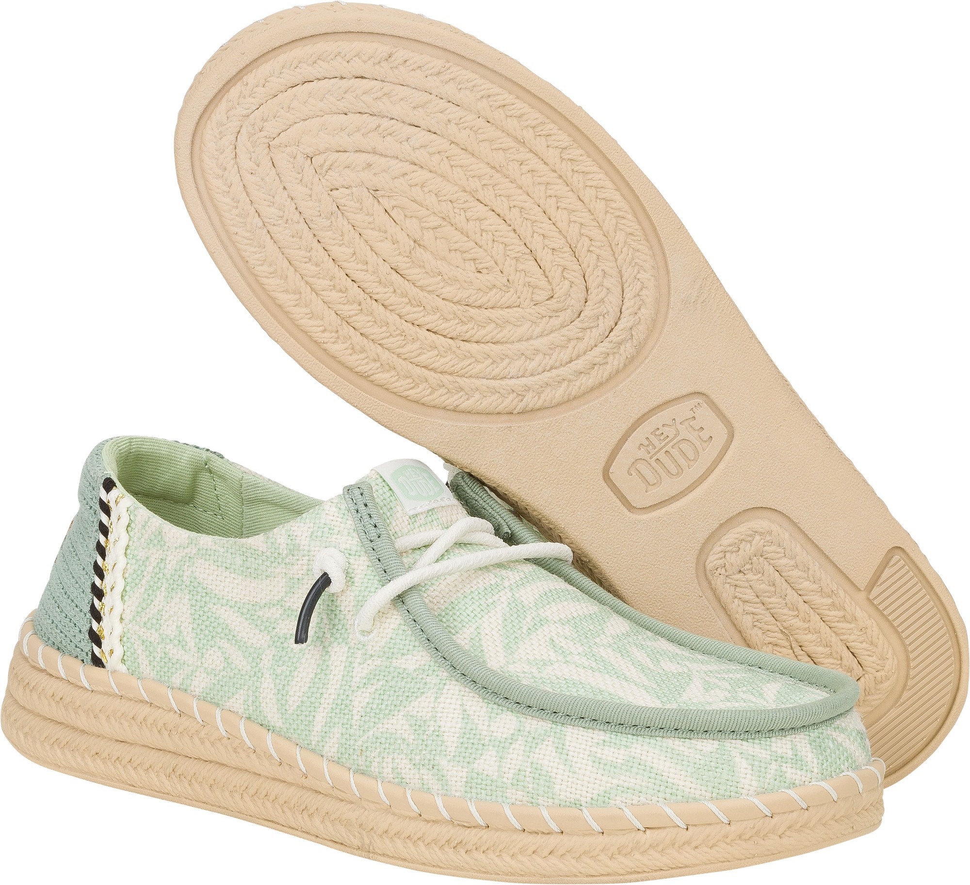 HEYDUDE kasutab looduslikku puuvilla, džuutu, lina, taaskasutatud polüestrit ja kerget EVA-talda, et tagada mugavus, hingavus ja vastupidavus.