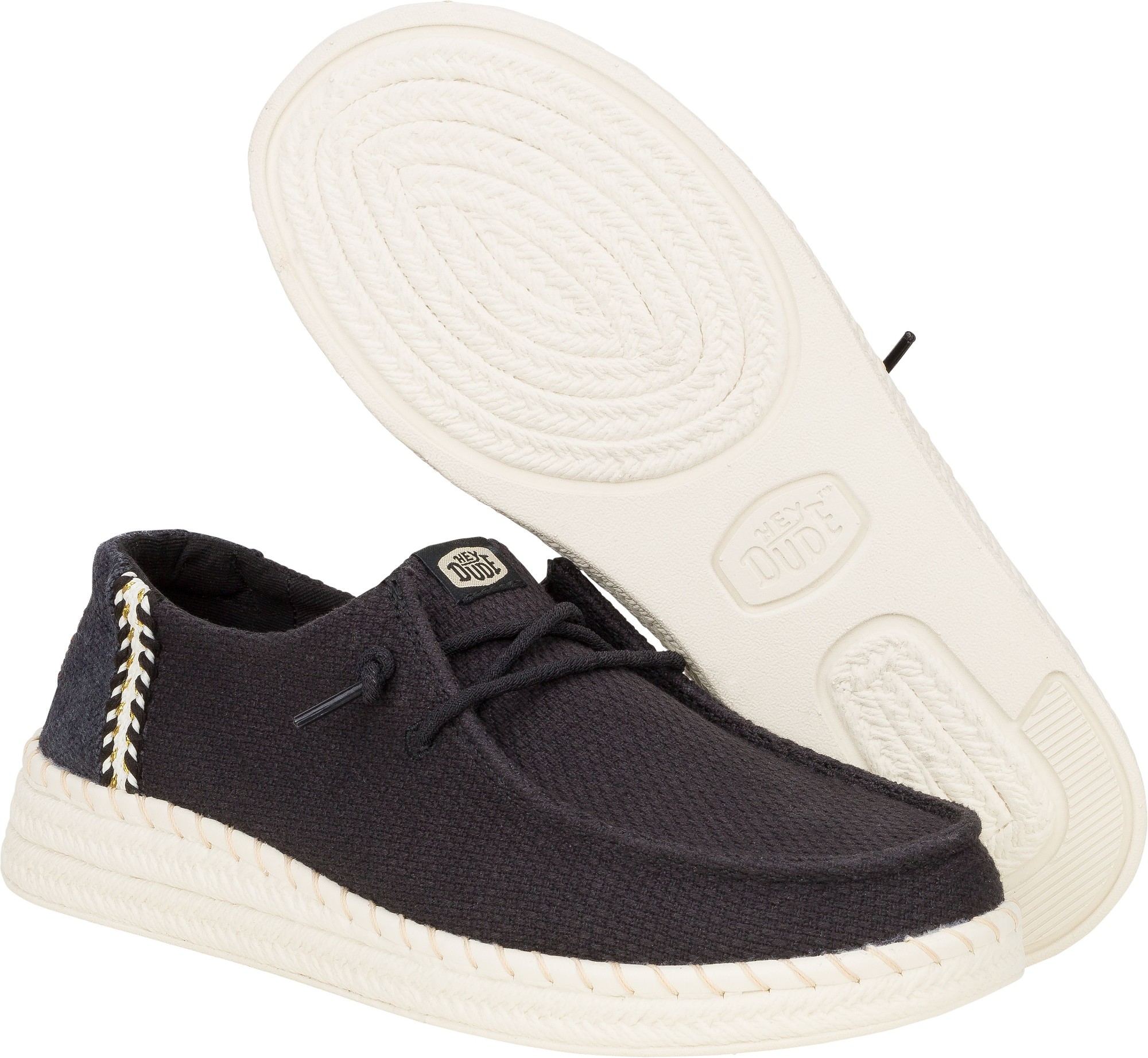 HEYDUDE kasutab looduslikku puuvilla, džuutu, lina, taaskasutatud polüestrit ja kerget EVA-talda, et tagada mugavus, hingavus ja vastupidavus.