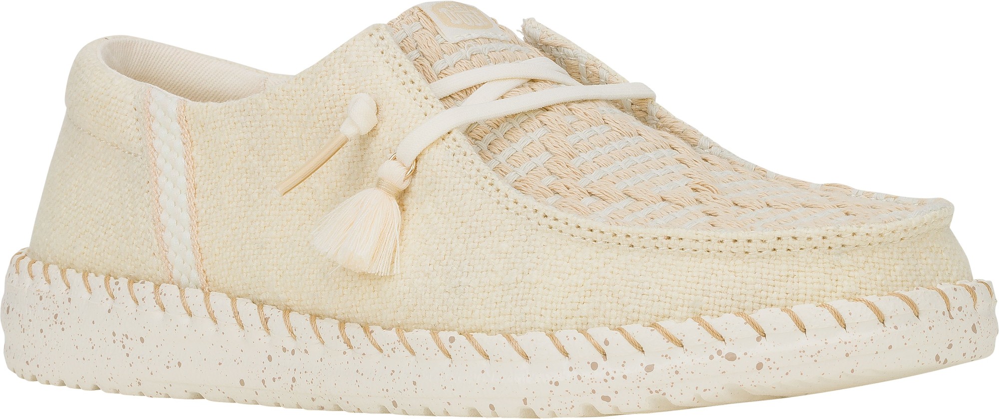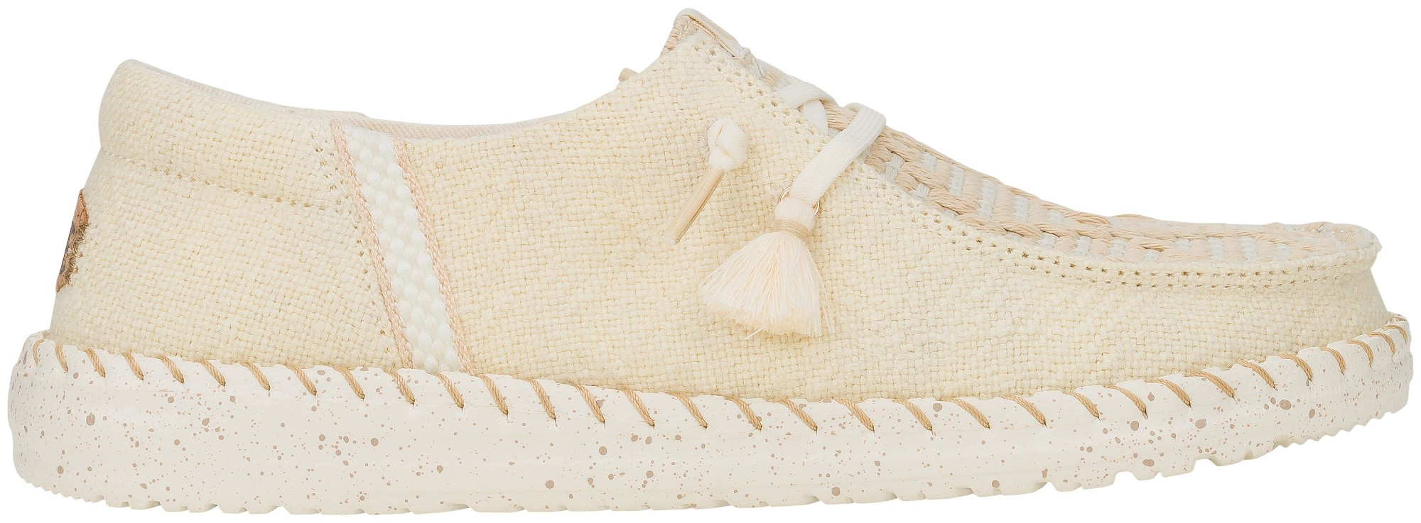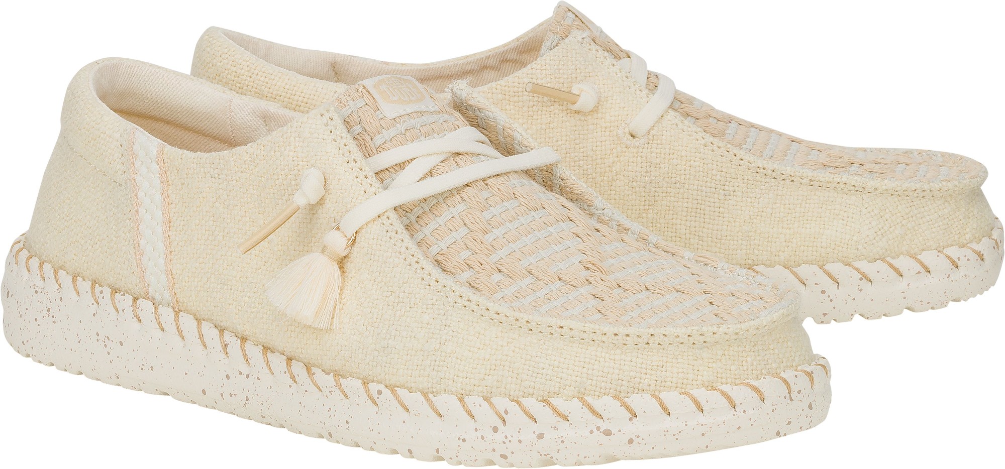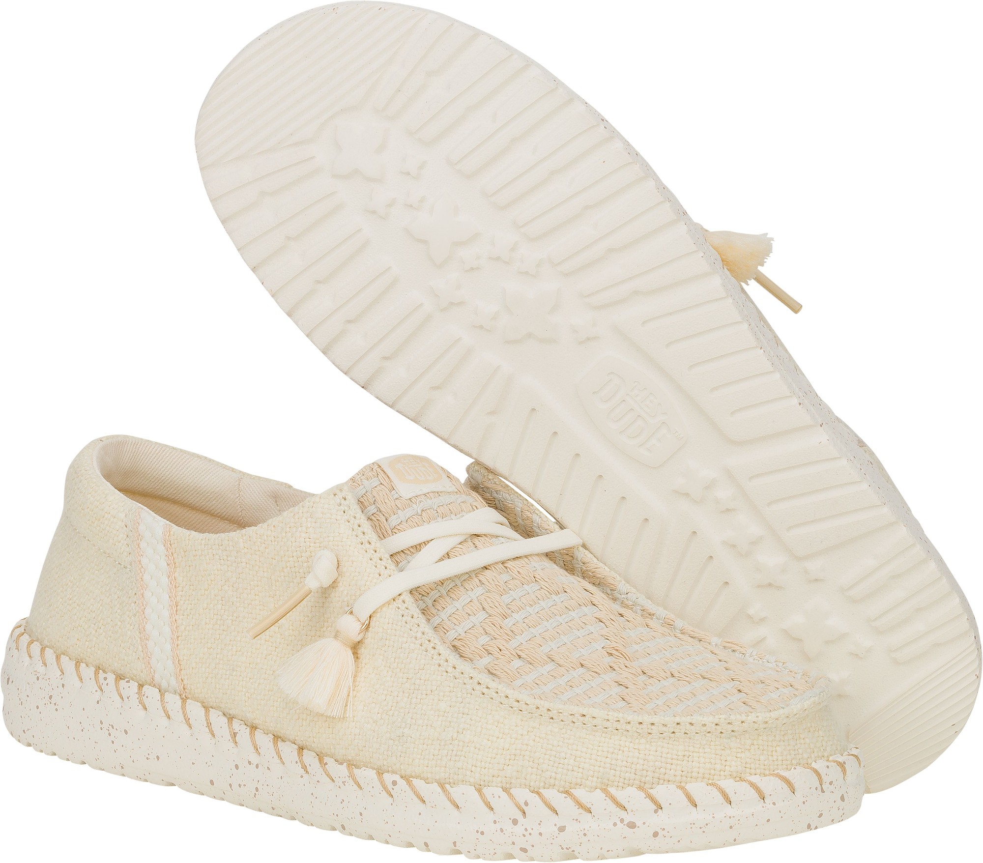 HEYDUDE kasutab looduslikku puuvilla, džuutu, lina, taaskasutatud polüestrit ja kerget EVA-talda, et tagada mugavus, hingavus ja vastupidavus.
