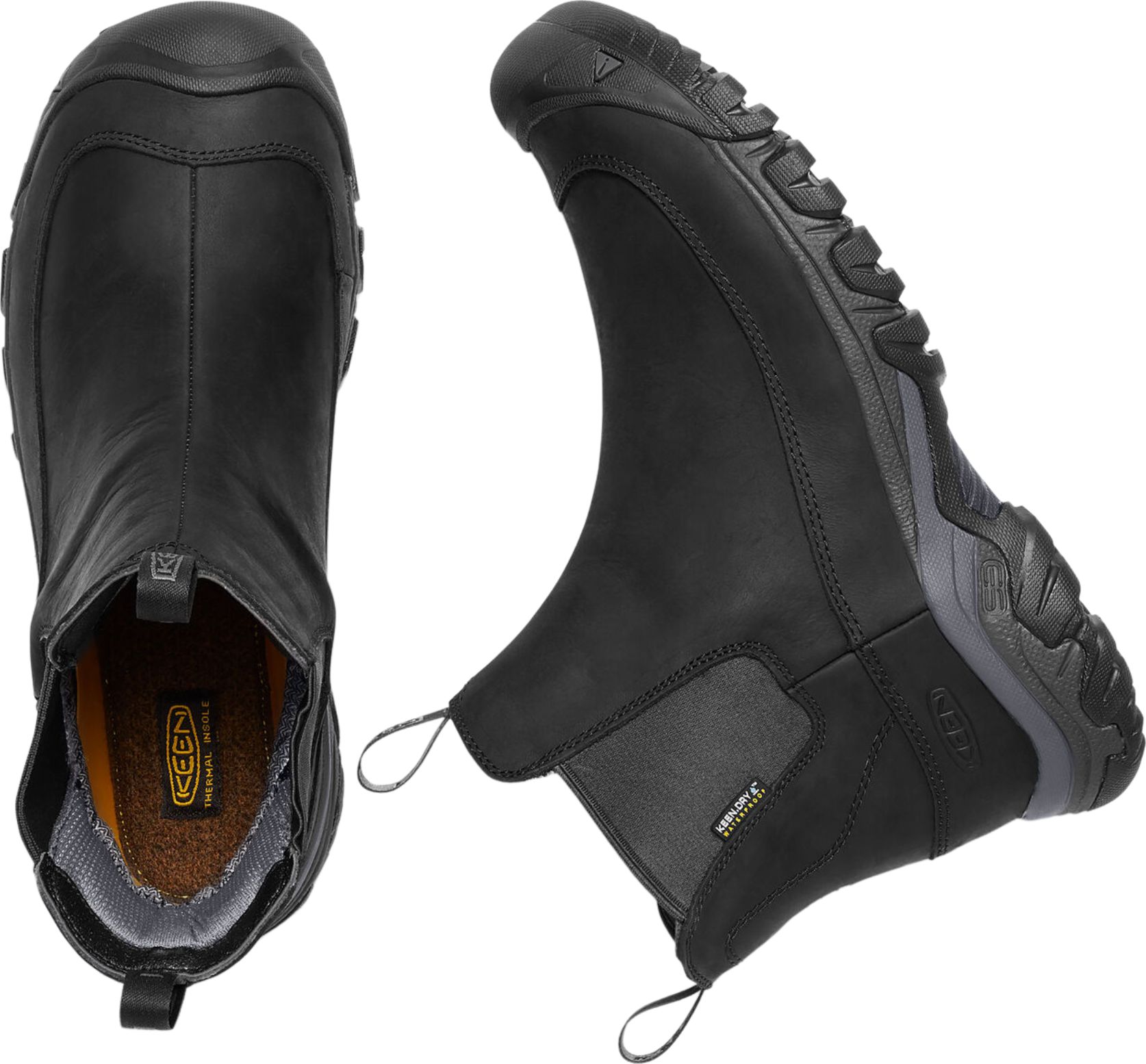 The slip-on waterproof winter boot to keep by the door. Featuring 200 g of KEEN.WARM insulation, environmentally preferred leather, and a snow-ready sole.