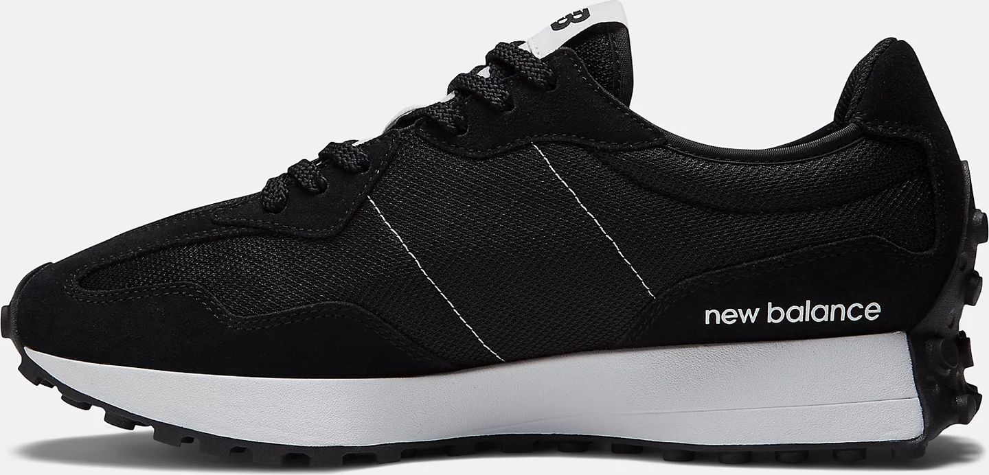 1970ndad olid tänu uuendustele, nagu tõhusam kannapehmendus ja spetsiaalne välistalla ehitus, ja ikooniline N-logo, New Balance’i ajaloos pöördeline aeg. 327 mõtestab julgelt ümber kaubamärgi jooksupärandi, andes uue kuju klassikalistele disainielementidele, mida peetakse 70ndate minimalismi tunnuseks. Nurgelise uue kujuga aerodünaamiliselt minimalistlik kiilujooneline siluett, asümmeetriliselt paigutatud suur „N“-logo ja ümber jalatsi ulatuv välistald – mudel 327 toob 1970. aastate innovatsiooniajastu uues valguses esile.