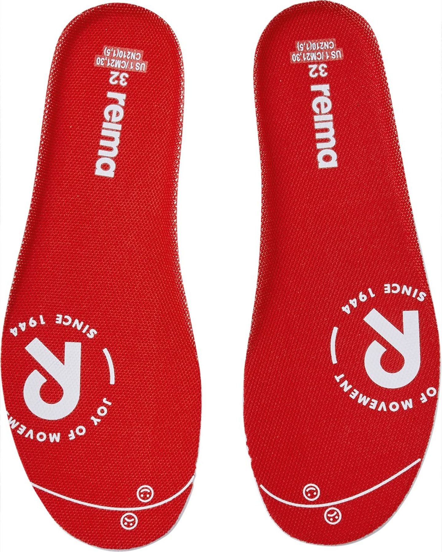 • Removable, molded EVA insoles with jersey lining and Happy Fit print help to find the correct size;
