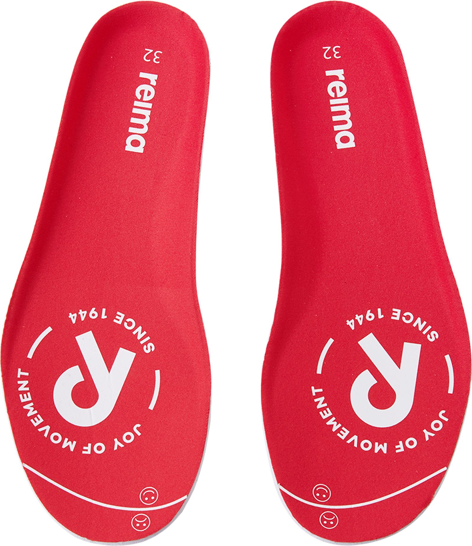 Removable, molded EVA insoles with jersey lining and Happy Fit print help to find the correct size;