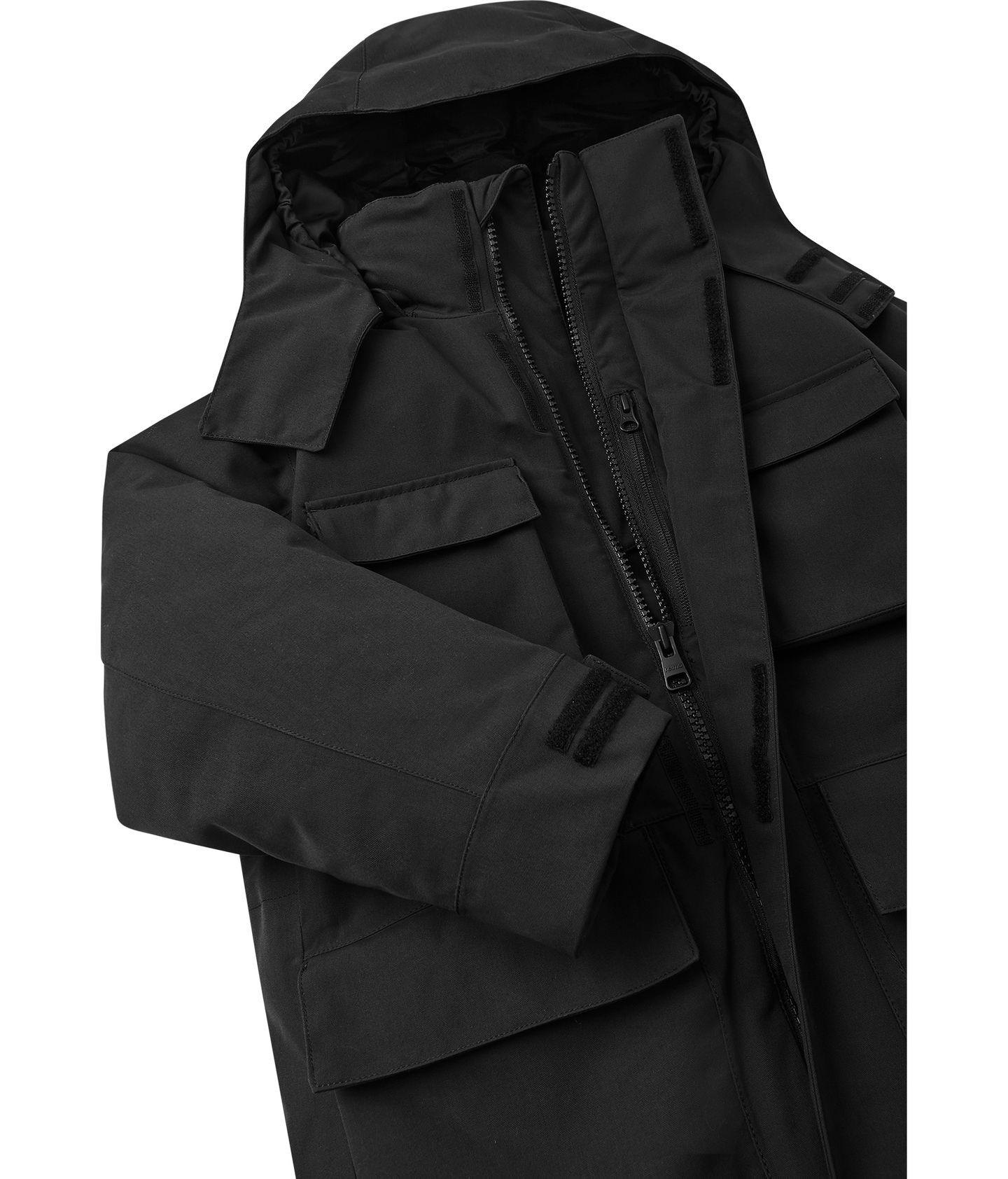 Wash separately inside out. Close zippers and velcro tapes. Do not use detergents with bleaching agents. Do not use fabric softener. Remove the garment after finished washing program to avoid color change. Tumble drying with three tennis balls in gentle temperature. Turn the product the right way out halfway through the spin cycle.