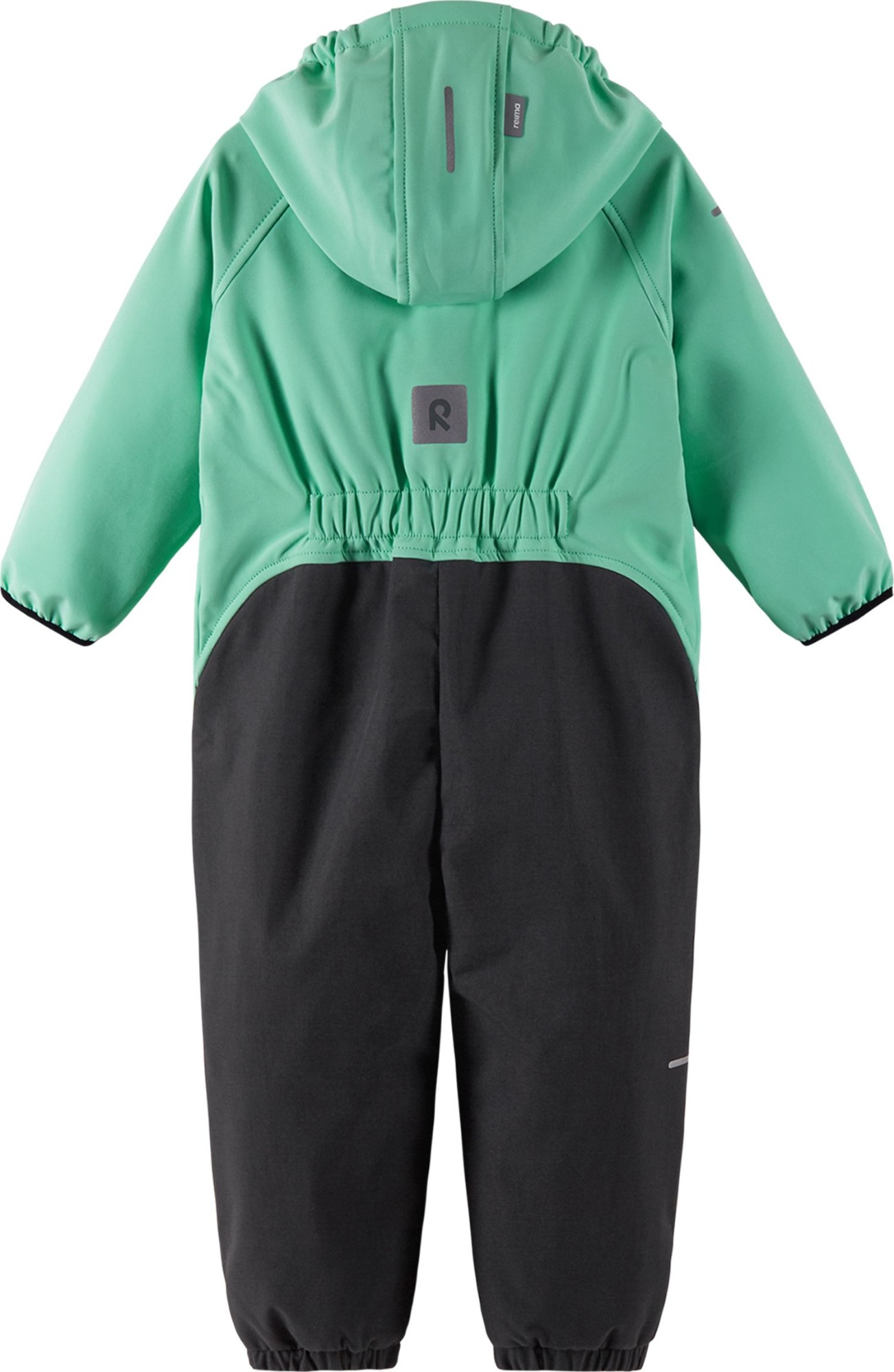 Toddlers' comfortable softshell outdoor jumpsuit. Blocks wind and keeps out light rain. Very durable bottom part.