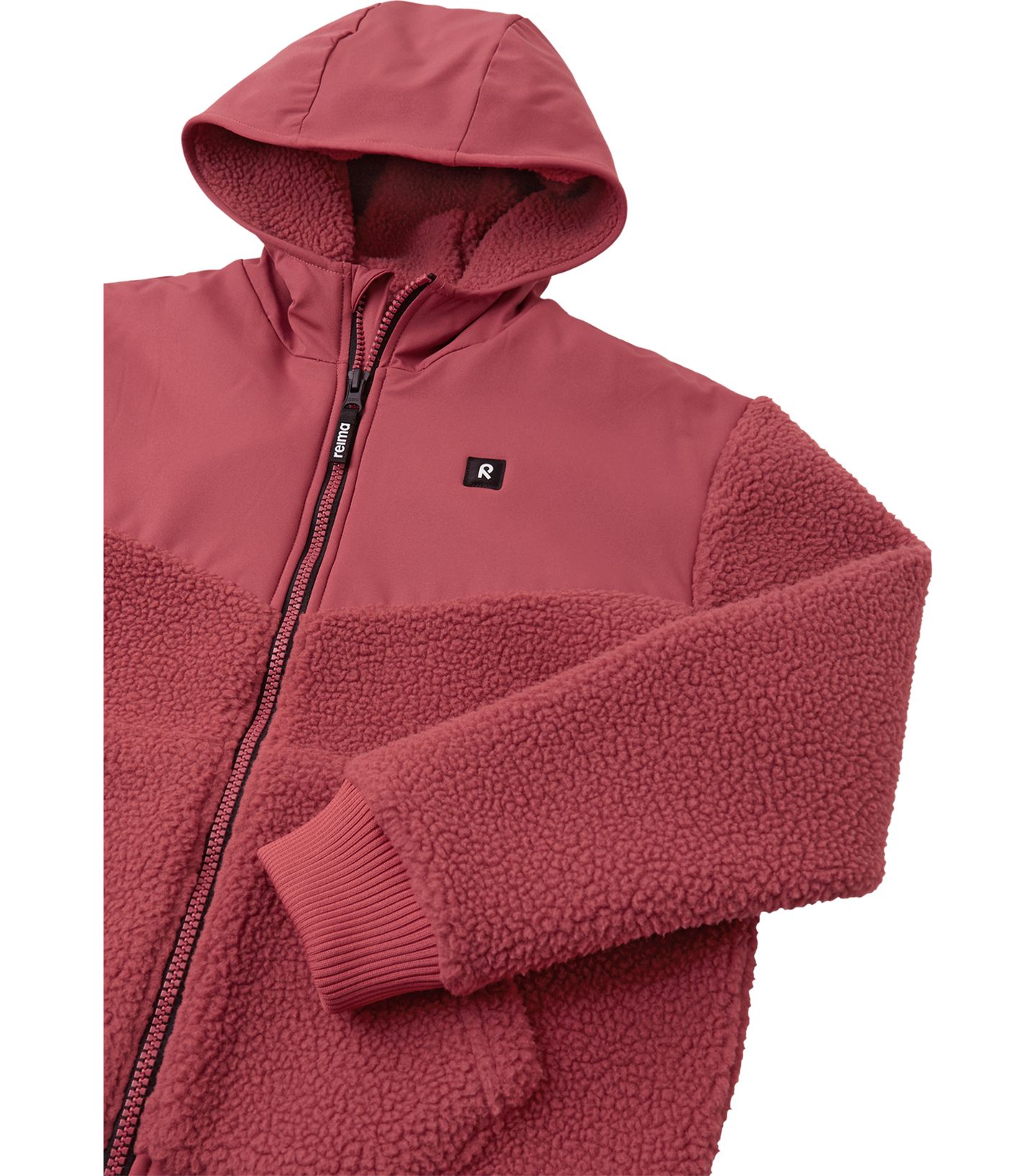 Kids' full-zip fleece hoodie with warm pile. An additional water-repellent fabric covers the top part for better protection. Made with recycled materials.