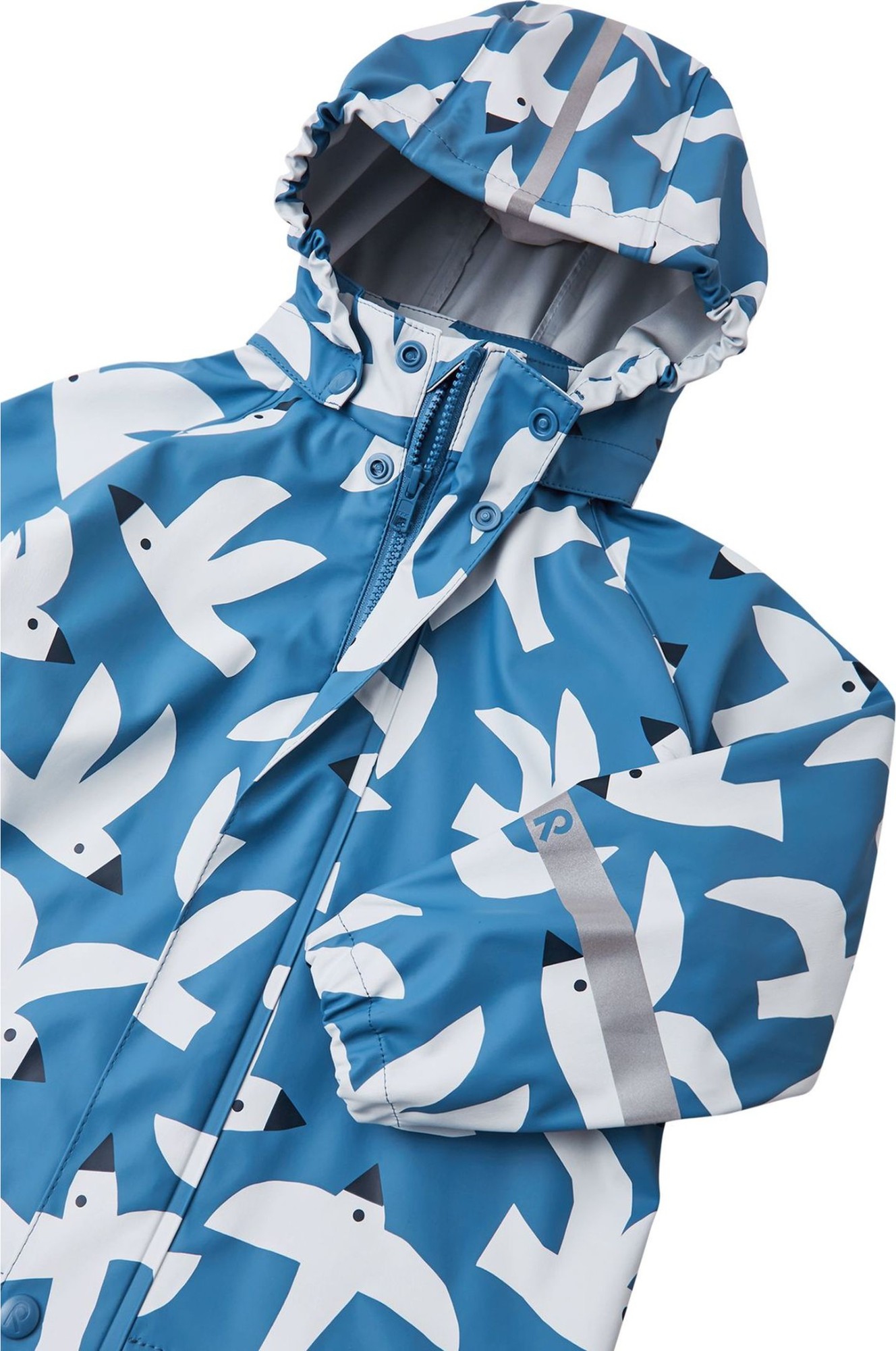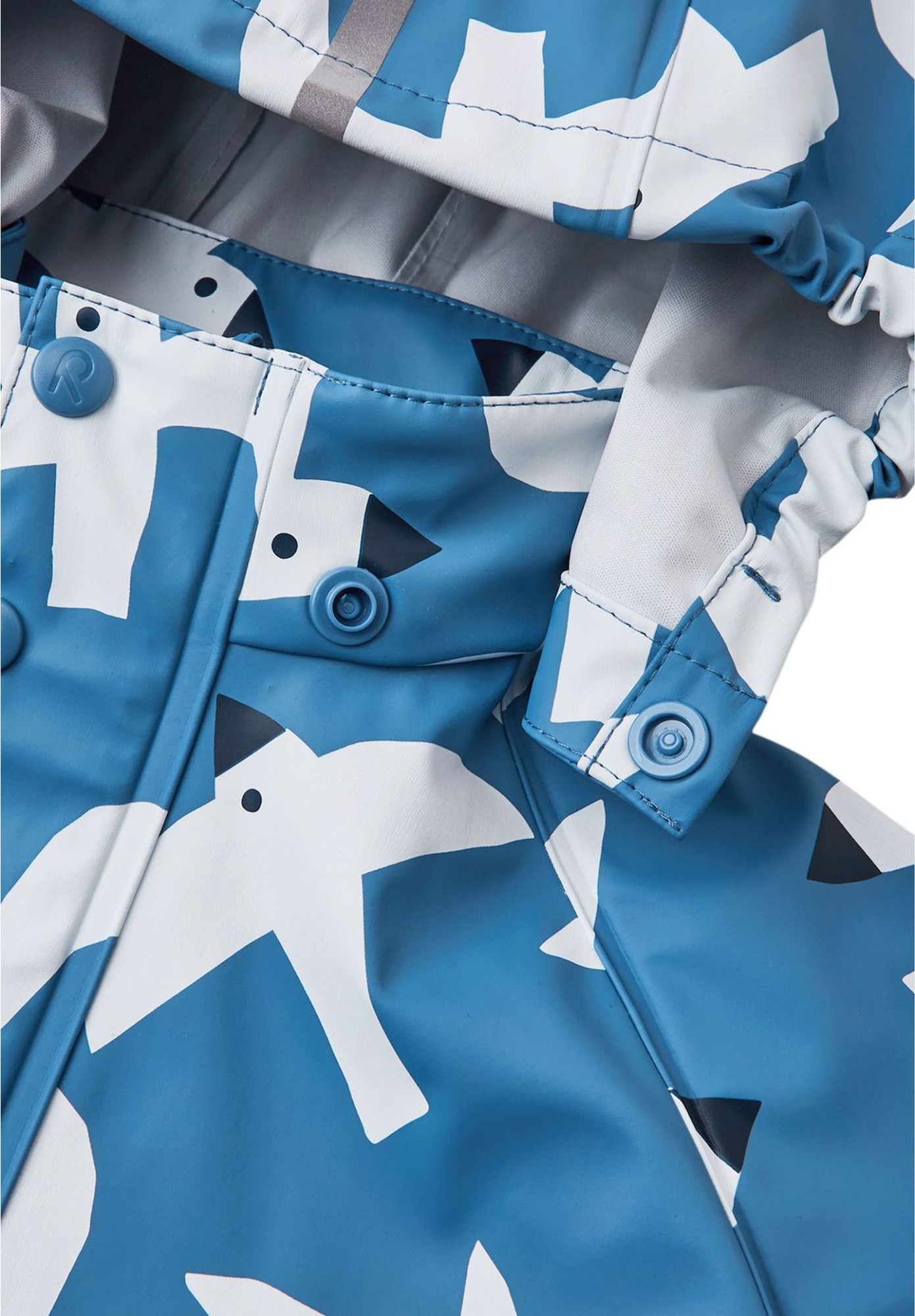 This kids' rain jacket is made from a comfortable and flexible PVC-free material that comes in a choice of bright colours. Its seams are welded waterproof and it won't harden in frost, making it ideal for using all year round. The safe, detachable hood also protects from heavy showers. A full-length zip front and lots of reflective details complete the look. Match this kids' raincoat with Reima's waterproof trousers for fun times outdoors whatever the weather.