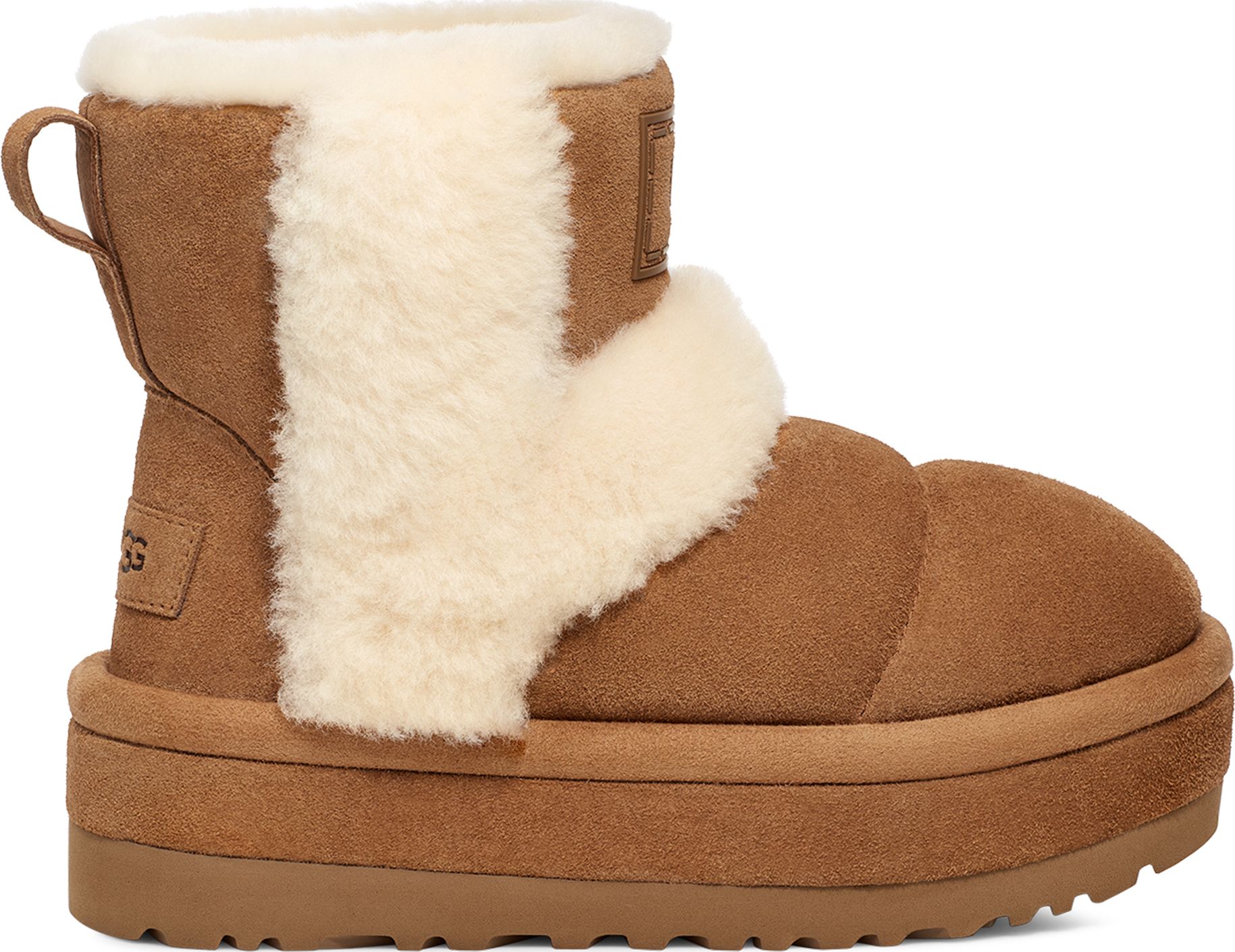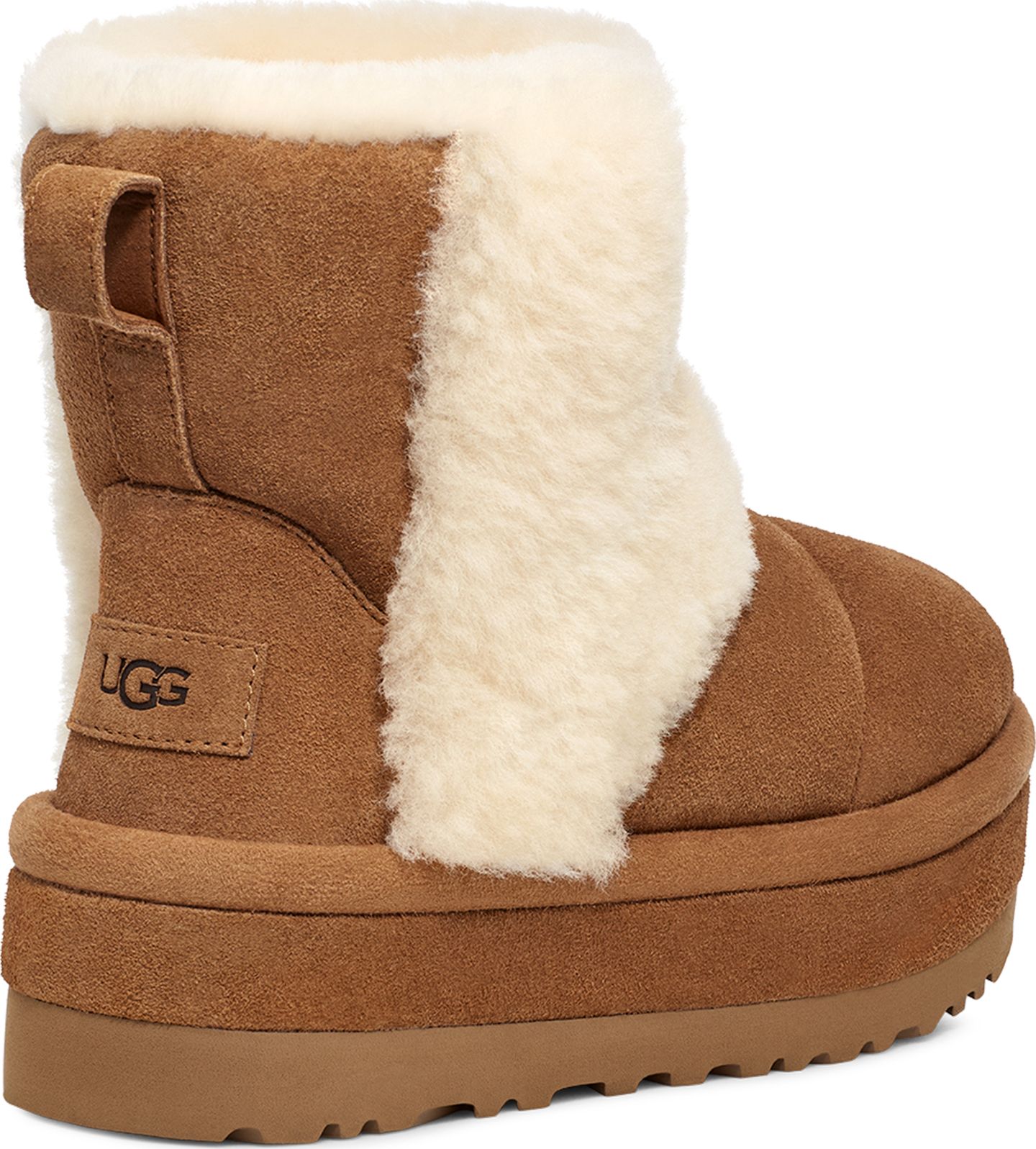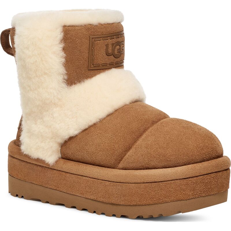 An audacious take on our Classic boot, the Classic Cloudpeak impresses with bold plush spill seams and a leg-lengthening platform sole. It's lined in our signature UGGplush™ upcycled wool, and the bold platform outsole is crafted from renewable, rainwater-nourished sugarcane. Pair with leggings and a long sweater.
