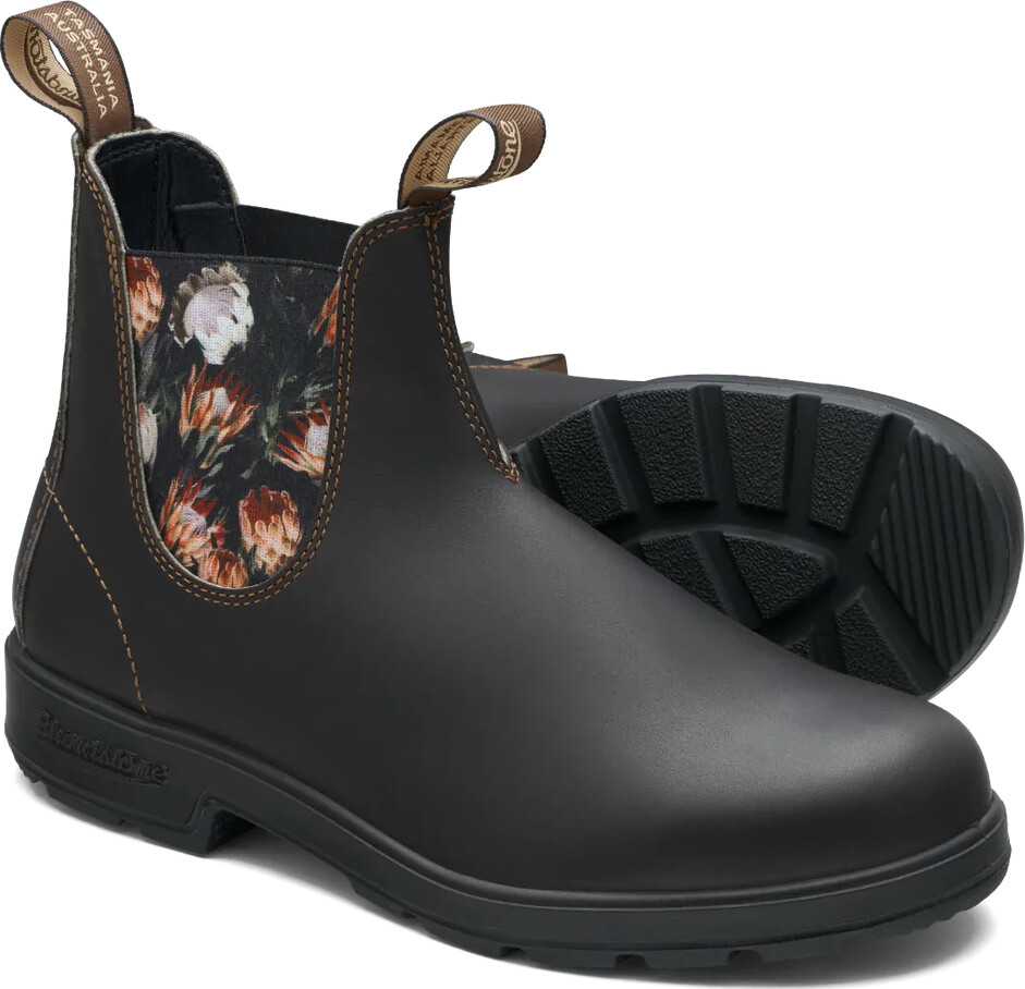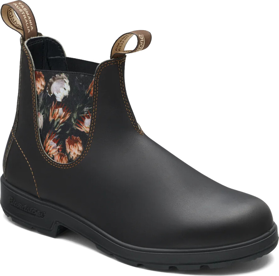 Blundstone Original leather boots #2205 in Brown with Protea Elastic celebrates Australia’s rare and beautiful Protea flower, known for its ability to thrive in rocky, rough territory, just like Blundstone boots. Pull-on, kick-off, all-day, dry comfort. A weatherproof boot that doesn’t mind a little watering. These flowers last!
