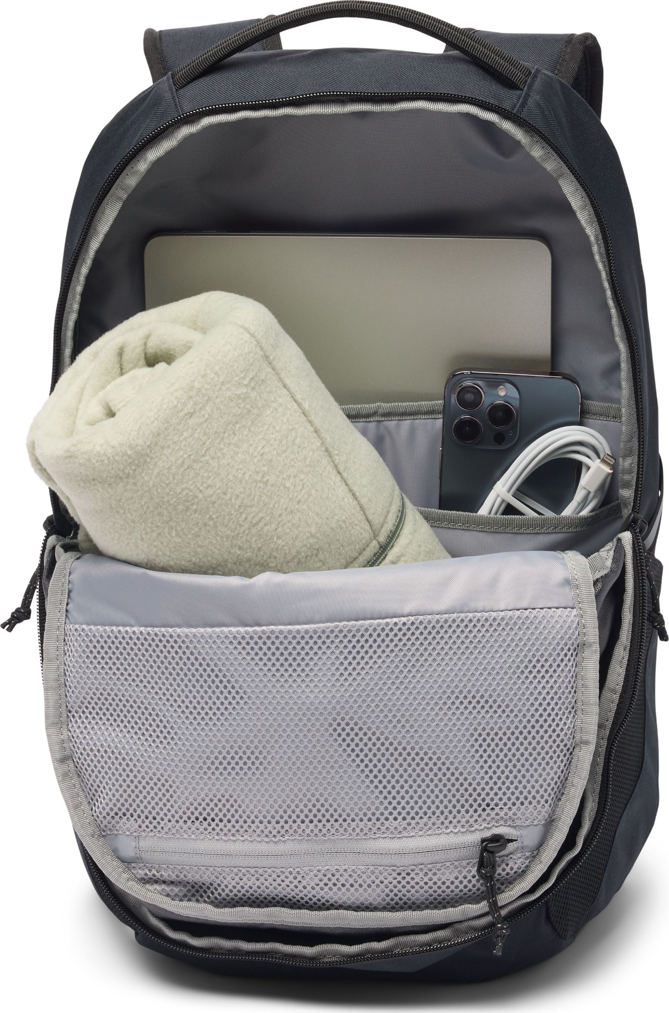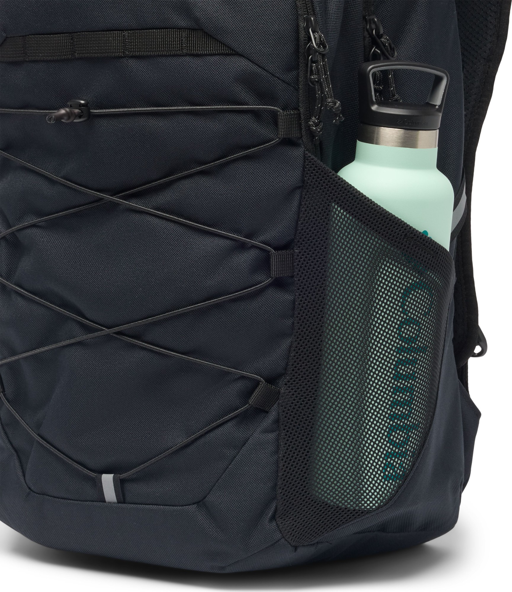 Conquer your daily commute with a stain-resistant backpack built to handle anything. An external bungee system provides extra storage, and a fleece-lined sleeve fits a 15-inch laptop.