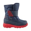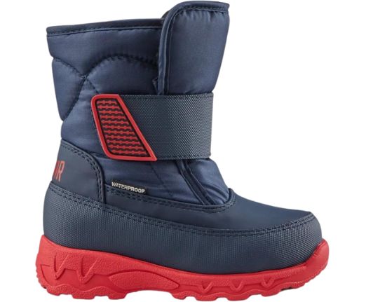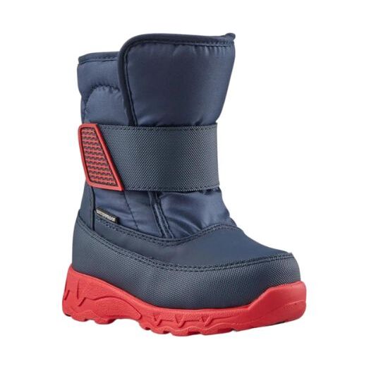 Lightweight nylon pull-on snow boot with single hook and loop strap closure and bellows tongue. Lightweight EVA outsole with rubber tread insert.
