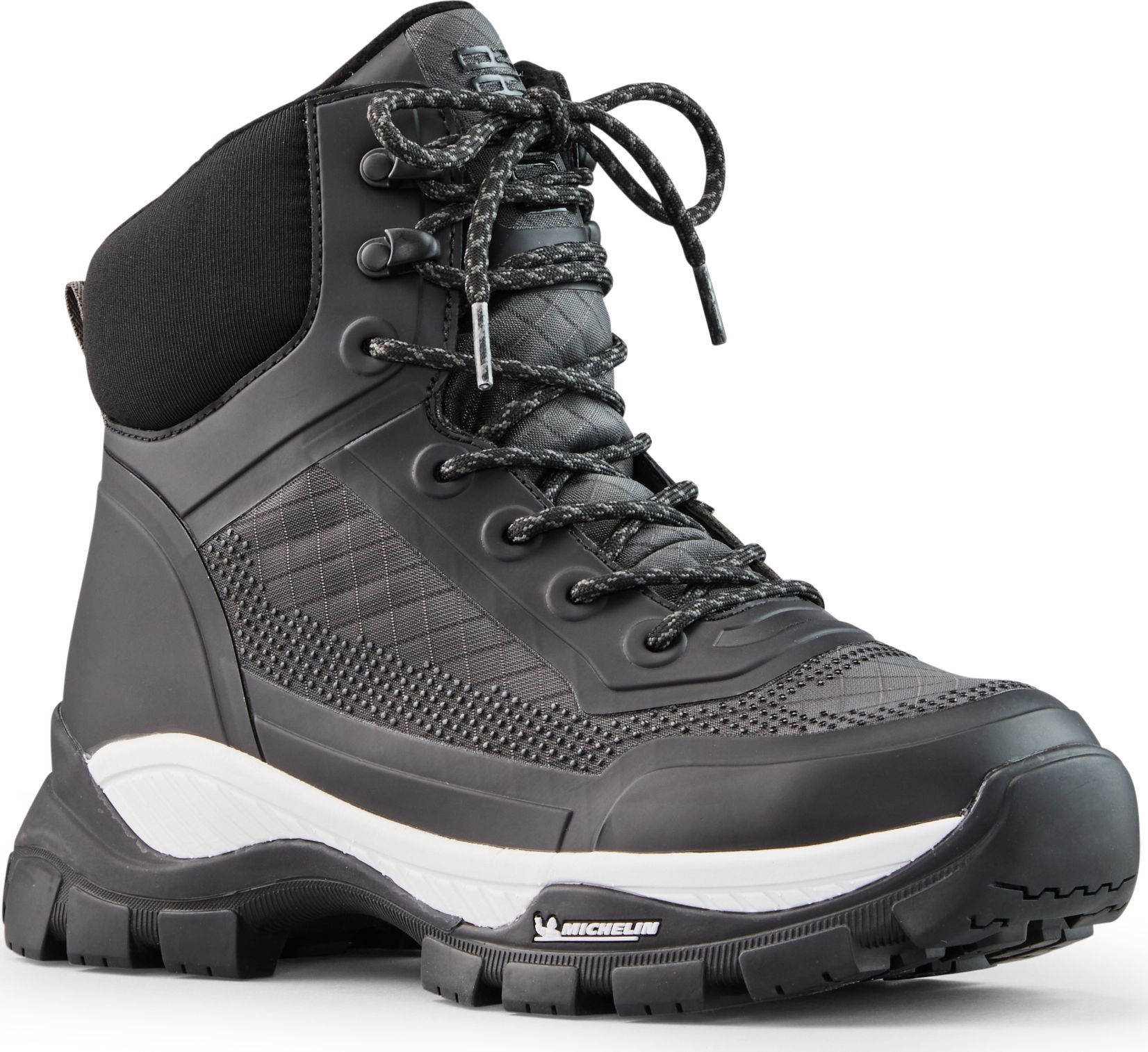 Microfiber and Nylon lace-up ankle-height winter boot. Polar fleece lining. Designed for cold temperature use, winter technology rubber soles by Michelin provide adherence with it’s sculptural design, traction from it’s tread design and spacing and good durability on multiple terrains.