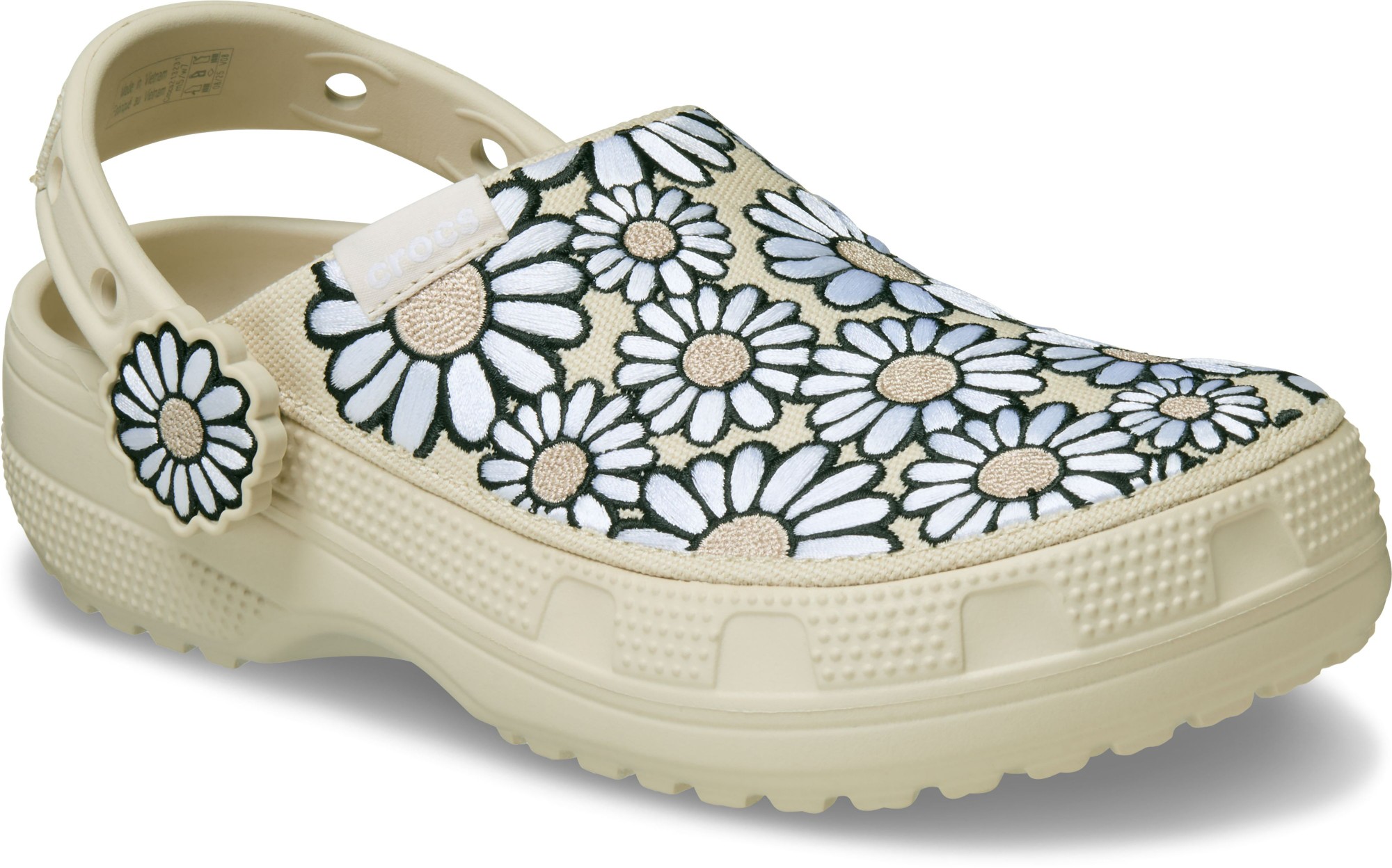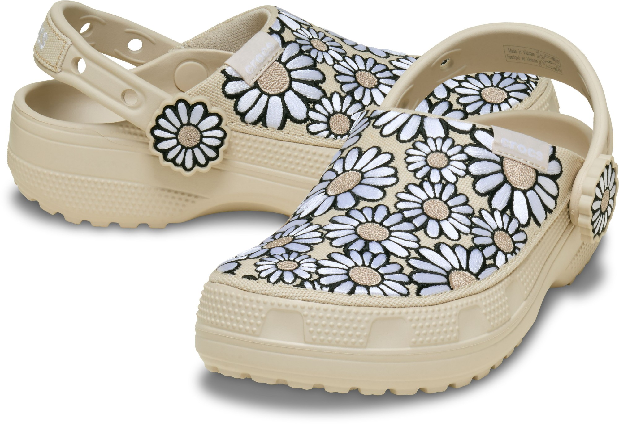 Your new favorite clog, now with embroidered details! The Classic Crafted Daisy Clog offers all that you love about Crocs clogs, now with a canvas upper that’s embroidered with daisies, along with custom embroidered daisy rivets. You’ll still enjoy the same Classic Clog fit and features, including a Croslite™ outsole for durability and support. Plus, the Jibbitz™ holes on the heel straps make it easy to personalize your look even more. For a fresh and artistic take on the Crocs comfort and style you love, step into the Classic Crafted Daisy Clog.