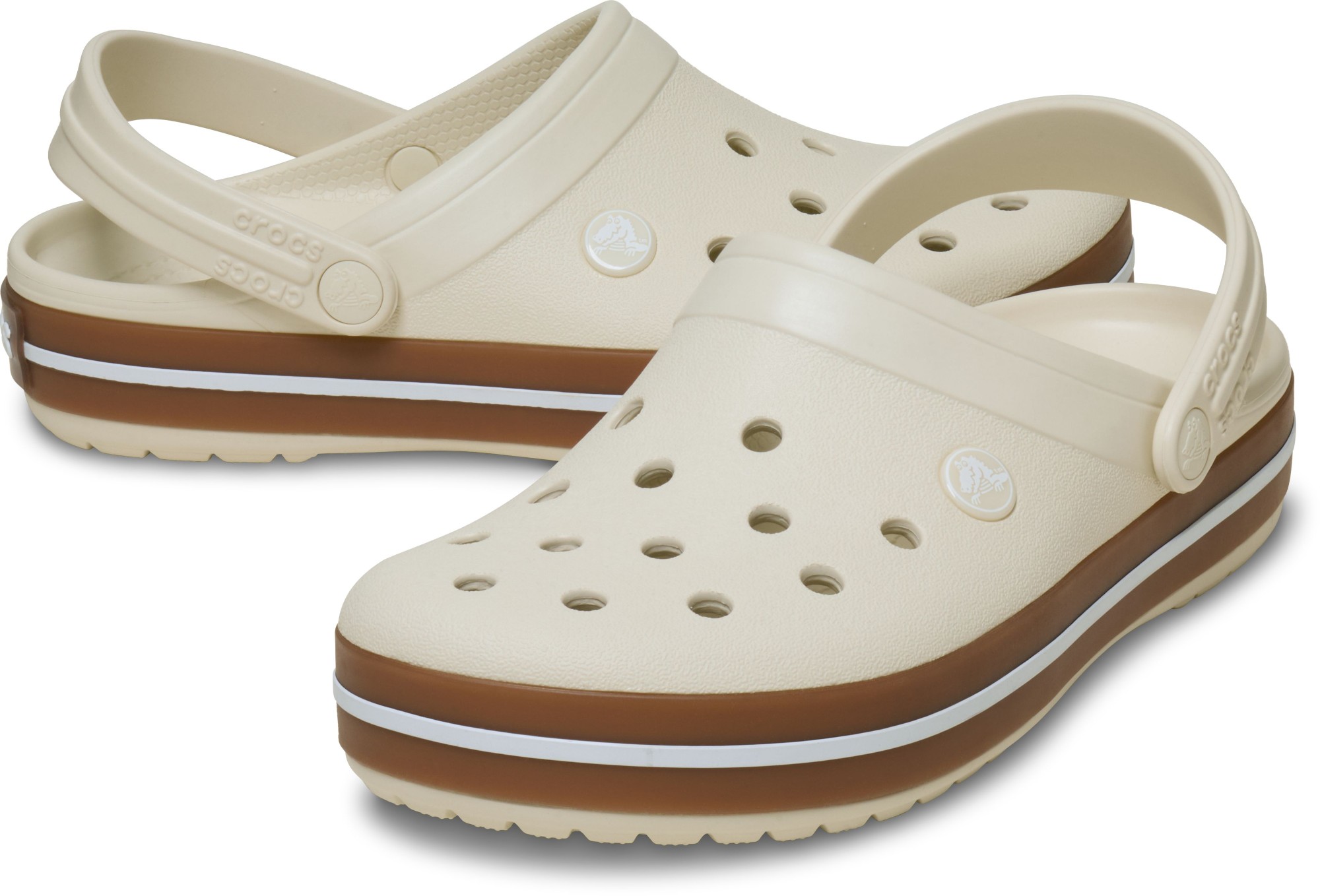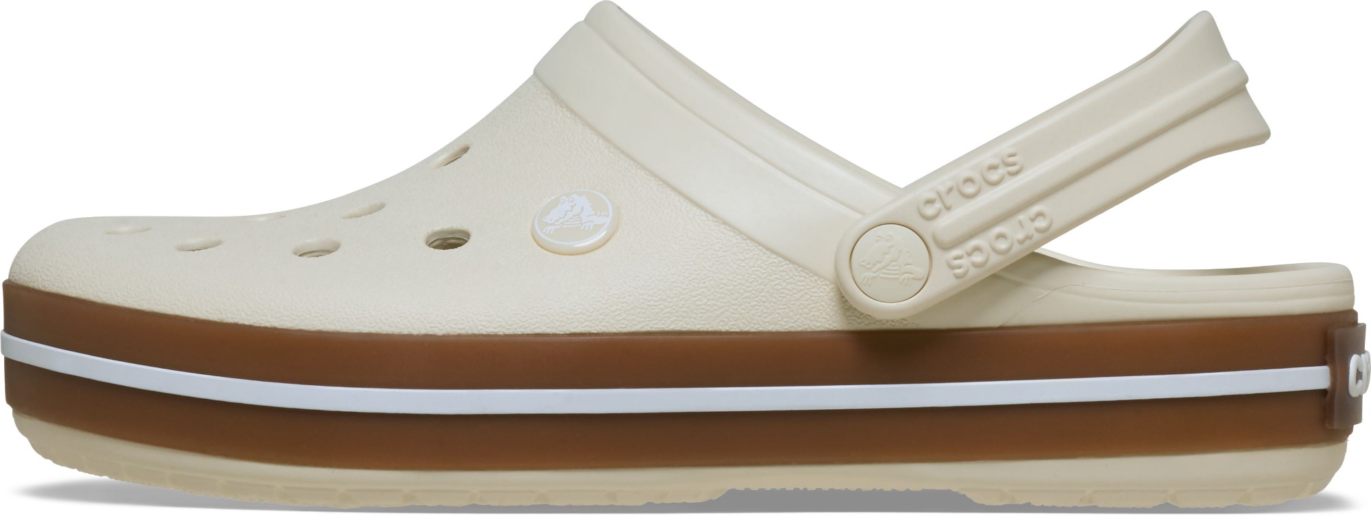 A stylish gum rubber band adds extra style to this version of the iconic Crocband clog. Like all Crocband styles, these feature original Croslite™ foam construction and a sporty design, and the contoured footbeds deliver comfort and support for whatever the day has in store.