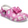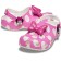 Yoo-hoo, it’s the Minnie Mouse Classic Clog from the Disney’s Mickey & Friends collection! This adorable Classic Clog is designed with Minnie’s iconic style in mind, featuring a pink polka dot print topped with a big, pink, glitter bow on each shoe! Minnie Mouse’s face adorns each of the rivets with her signature across the backstrap.