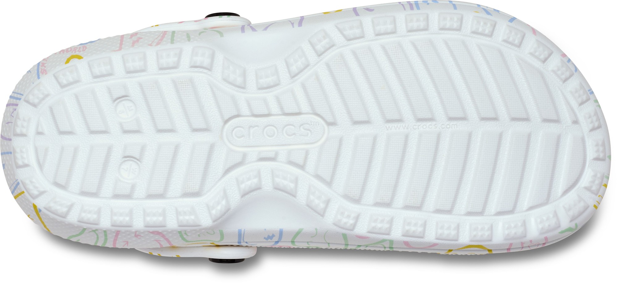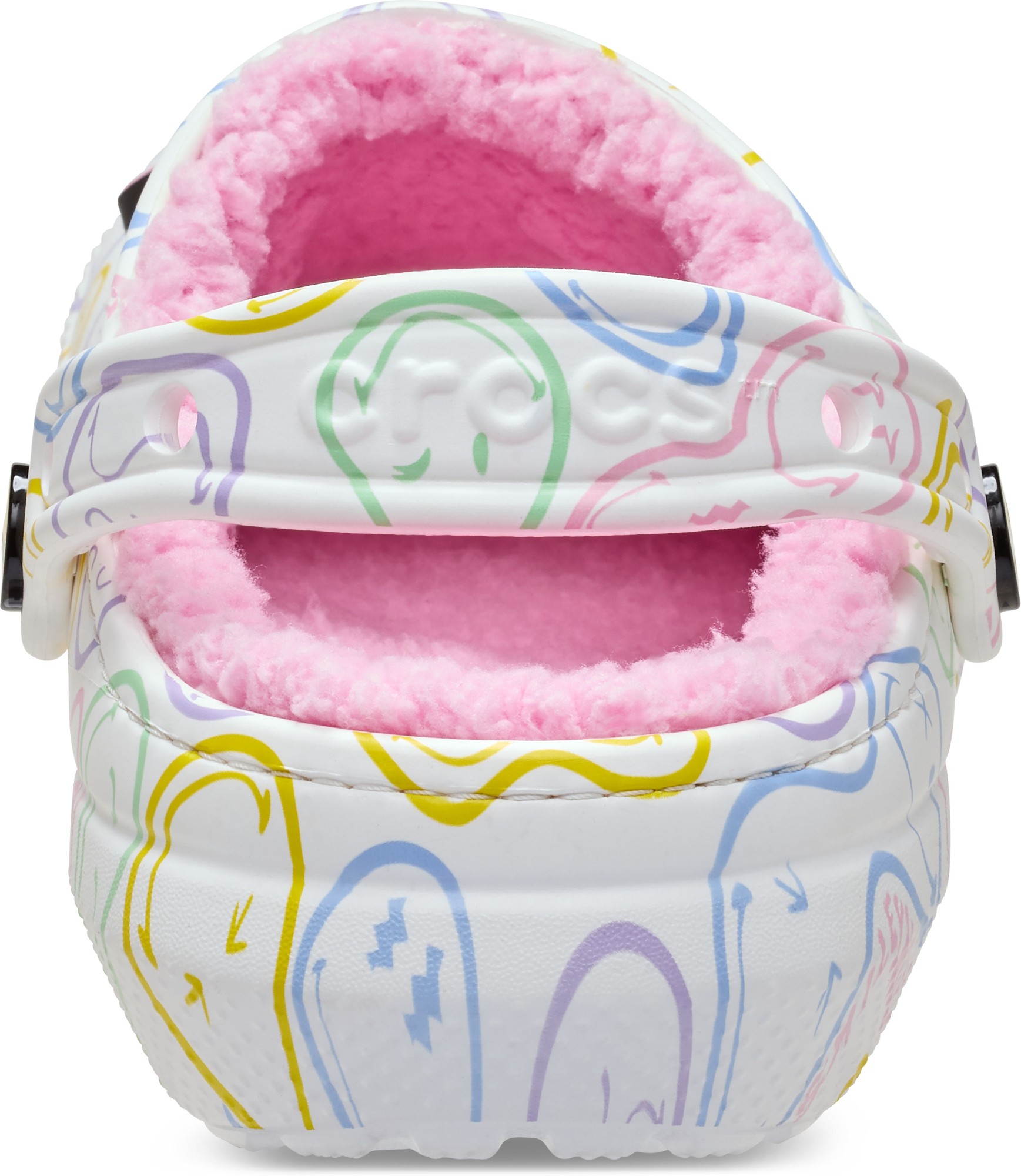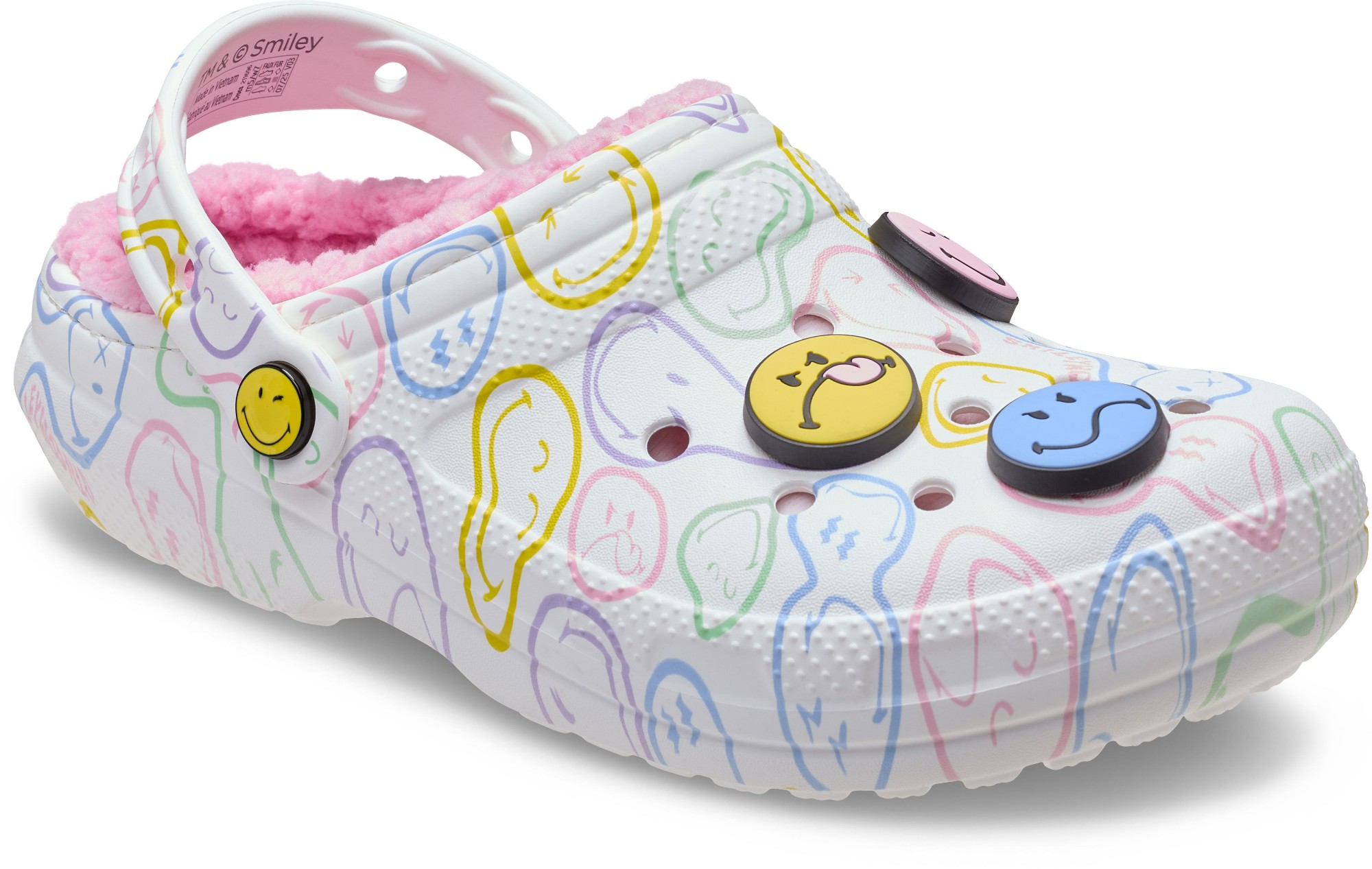 Stay cozy and wear your joy wherever you go in the SmileyWorld® Classic Lined Clog, a plush and playful pair that will have you grinning ear to ear. A fuzz-lined interior and Croslite™ sole supports an upper that features an all-over SmileyWorld graphic print and comes pre-loaded with a colorful collection of Jibbitz™ charms. Additional room on each shoe allows you to add even more personalization depending on your mood. Dial up the smiles in a style that's sure to be your new favorite.