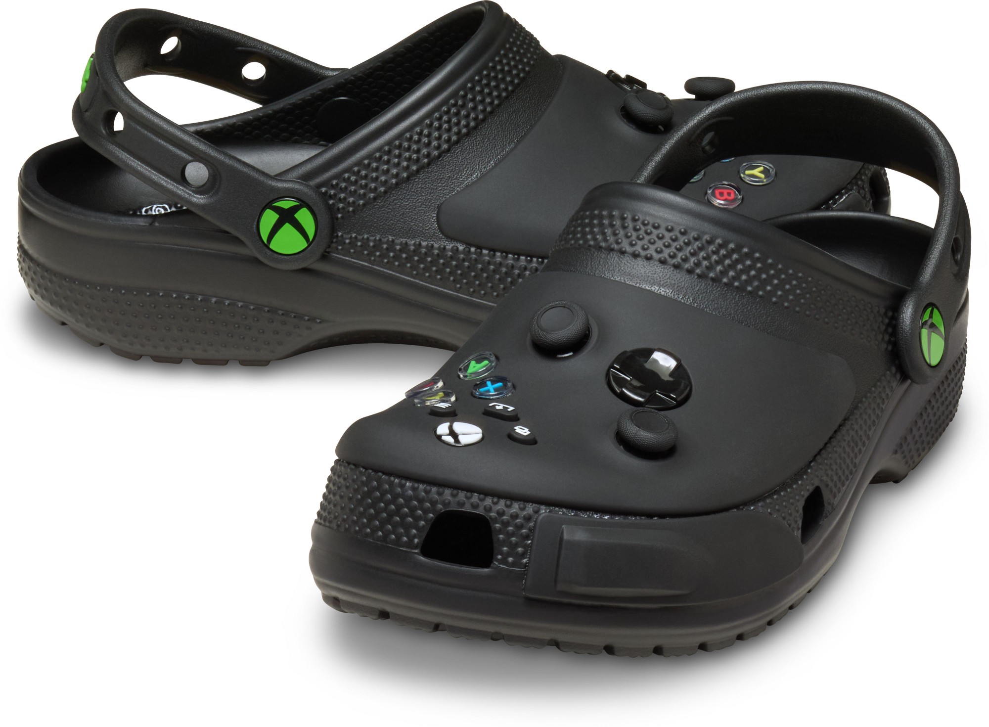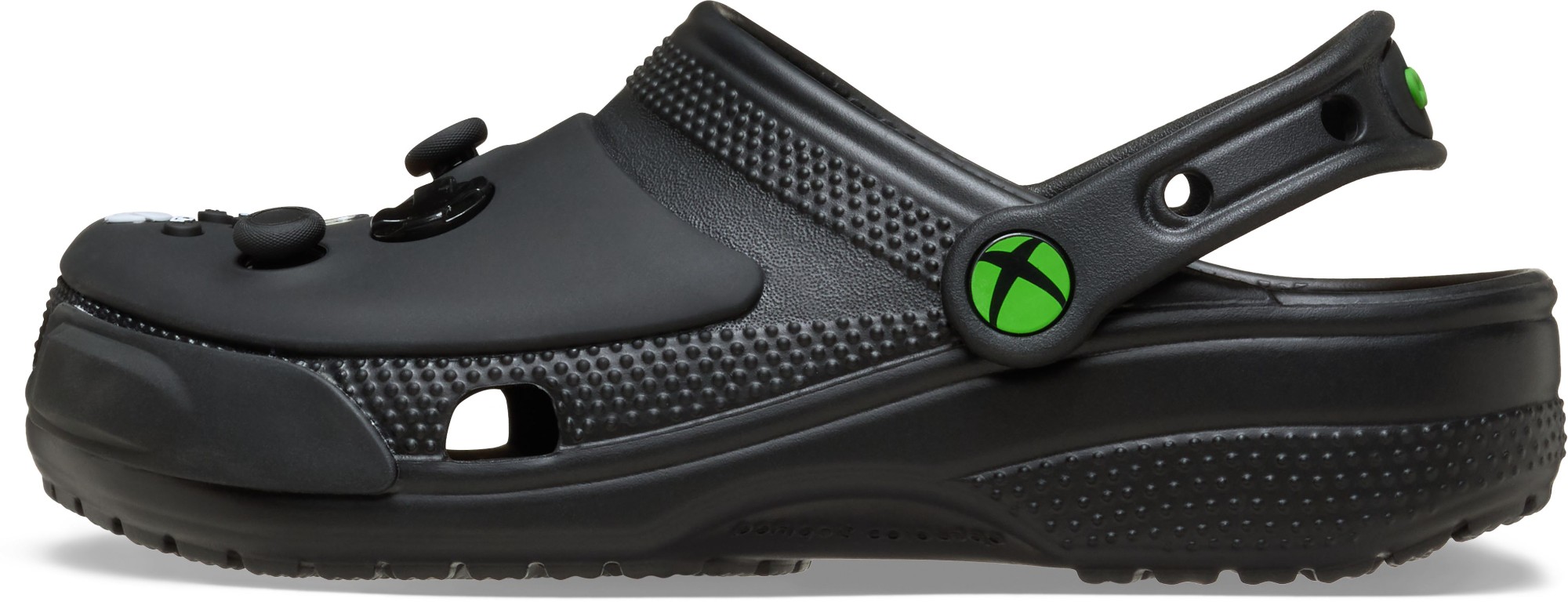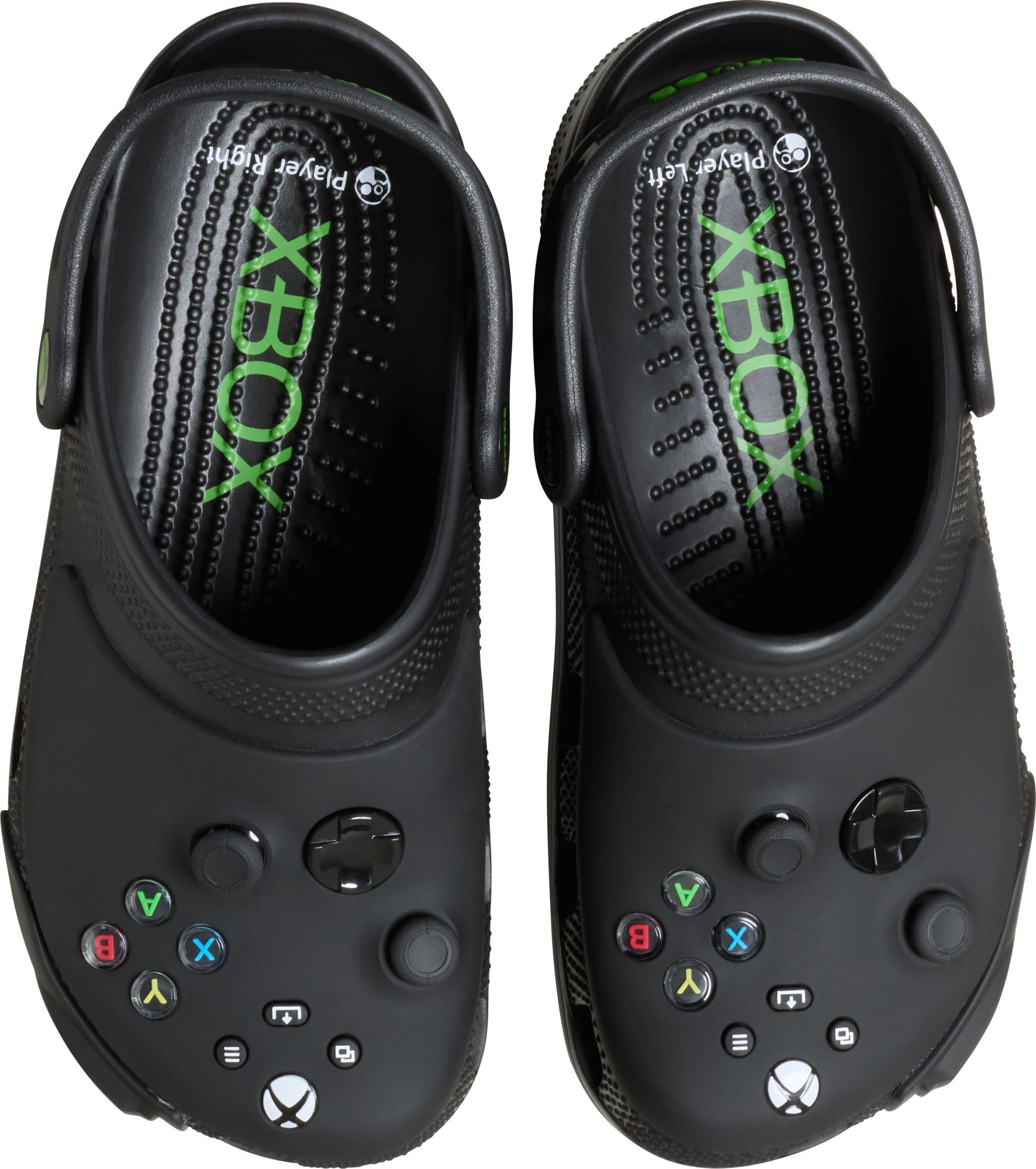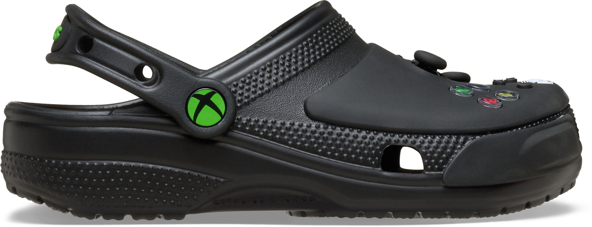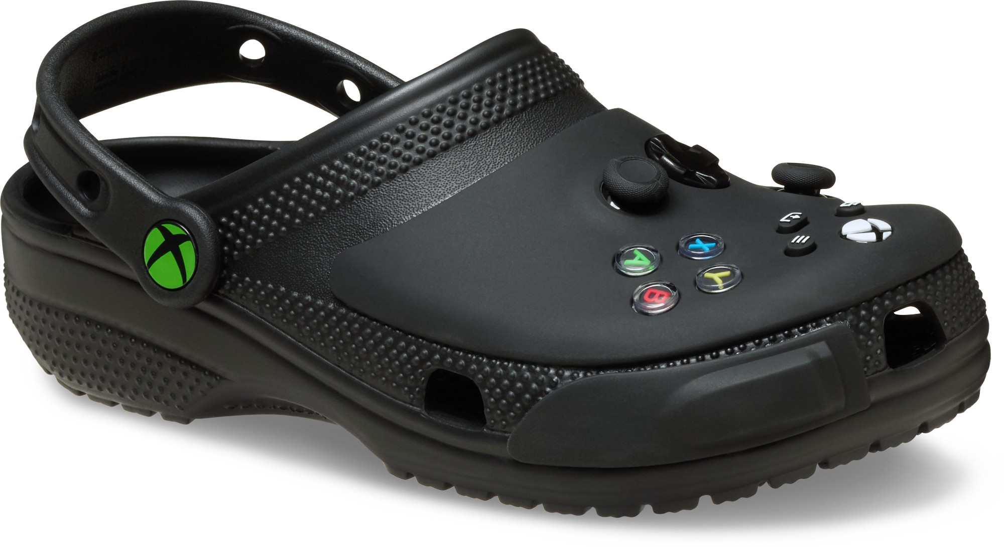 The Xbox Classic Clog was designed to kick back and game. This clog-meets-controller style features fixed joysticks and buttons with a smooth matte finish and branded Xbox rivet.