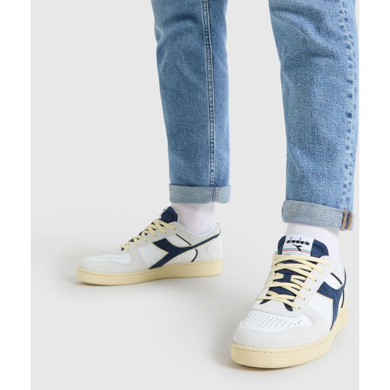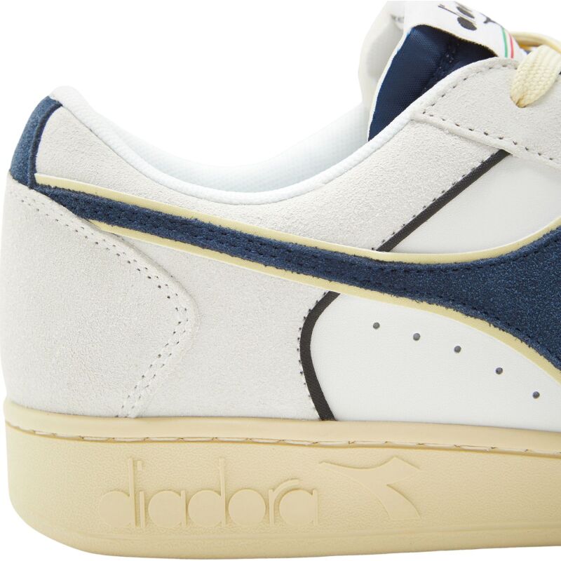 An iconic trainer from diadora, the Magic is straight out of the basketball section of our 1985 catalogue. Created as the evolution of the Mi Basket, with a calfskin upper, shock-absorbing midsole and insole and special velcro strap on the high-top.