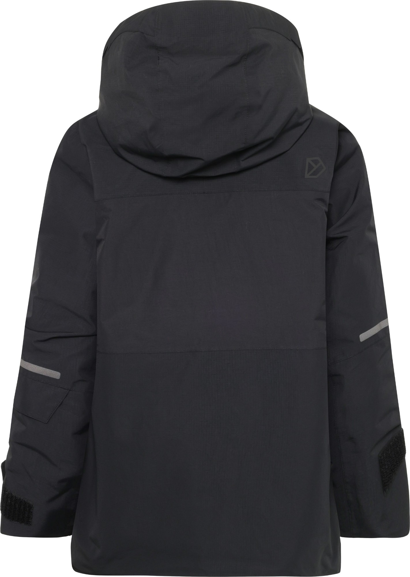 Gabbro is a soft and flexible jacket designed for all outdoor adventures. It is fully water- and windproof with taped seams and made from a breathable material, keeping kids dry and comfortable in both rain and wind. The detachable hood can be adjusted with Velcro for an optimal fit and protection. The jacket includes practical features such as a ski pass pocket, zipped side pockets, and a loop for attaching gloves. The cuffs are elastic and adjustable with Velcro, and the front zip is covered by a flap that closes with both Velcro and buttons. The collar protects the chin from the zip for extra comfort. A name tag with space for several names makes it practical for passing down or second-hand use.