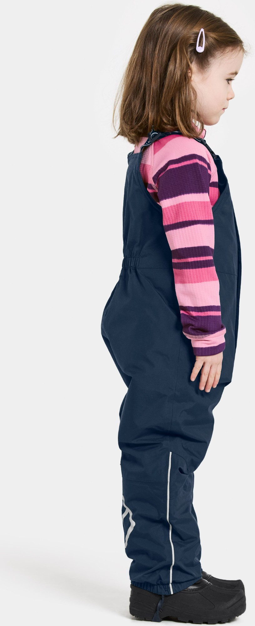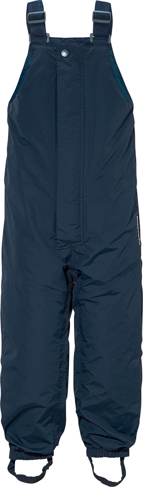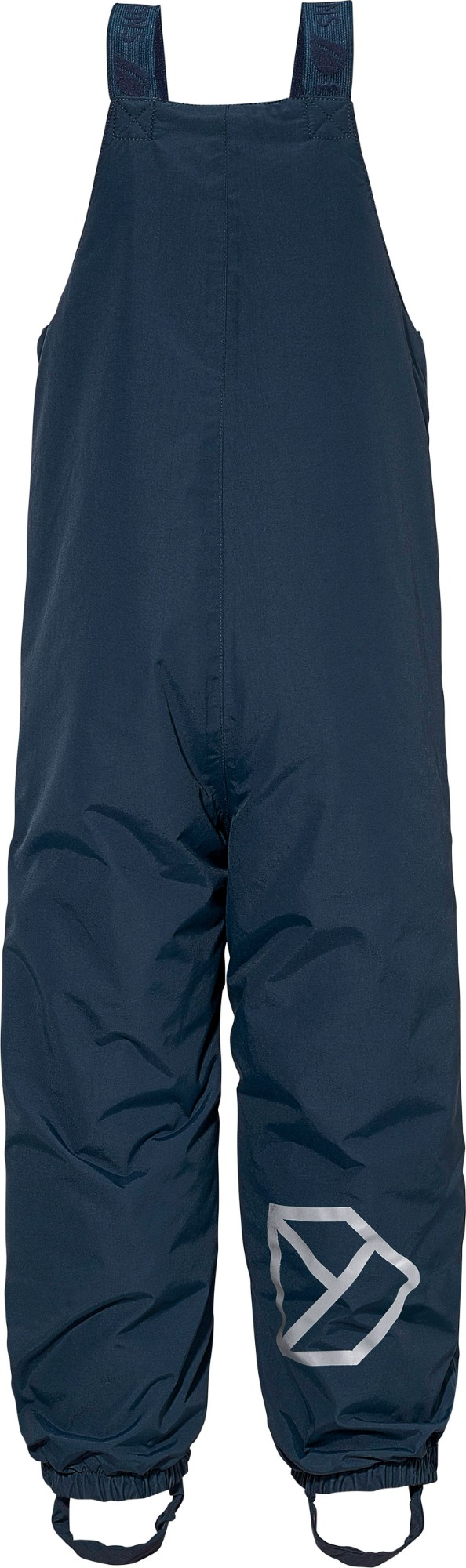 The trousers feature an elasticated waist at the back and adjustable braces for an ideal fit. Durable silicone foot straps and elasticated leg ends keep the trousers securely in place during play. Practical details include a name label with space for multiple names – perfect for handing down or second-hand use. An inner hanger makes them easy to dry after a day outdoors. Reflective details provide increased visibility in low light.