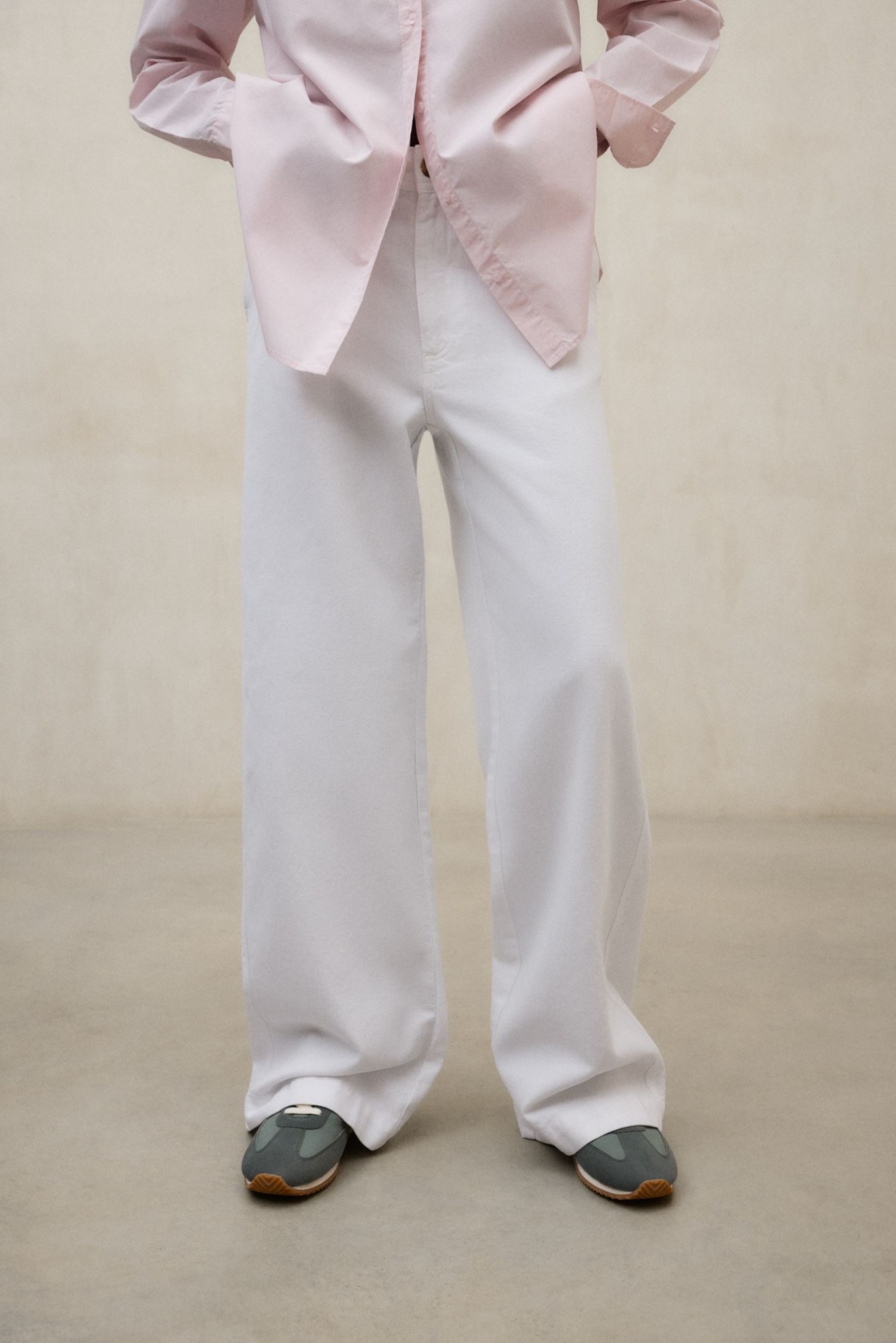 The Valls Trousers are made of 50% regenerative cotton. High-waisted. Button and zip fly, with patch pockets at the rear. Featuring belt loops.