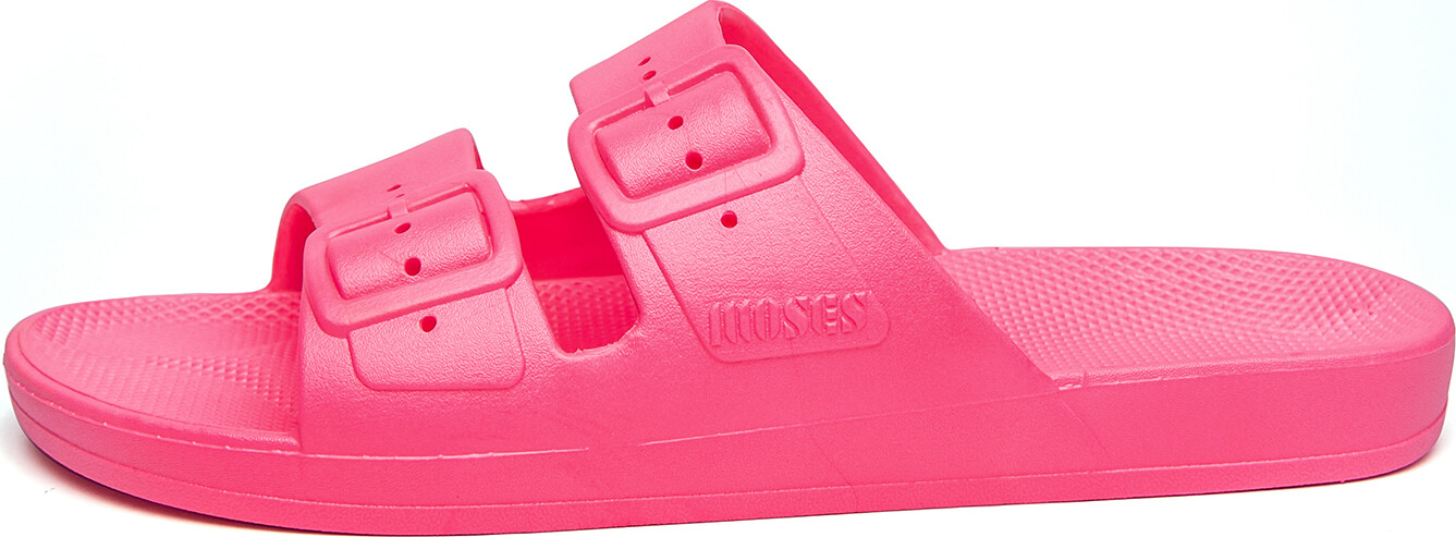 Freedom Moses offer eye-popping chill slides. Cool, colorful, genderless, ageless, timeless and most importantly - fun. Freedom Moses 100% vegan slides are injected with air so you feel like you’re walking on a cloud. Made from a single mold, slides are washable & durable, made to last. Freedom Moses slides are infused with artificial oils to smell as milk and honey.