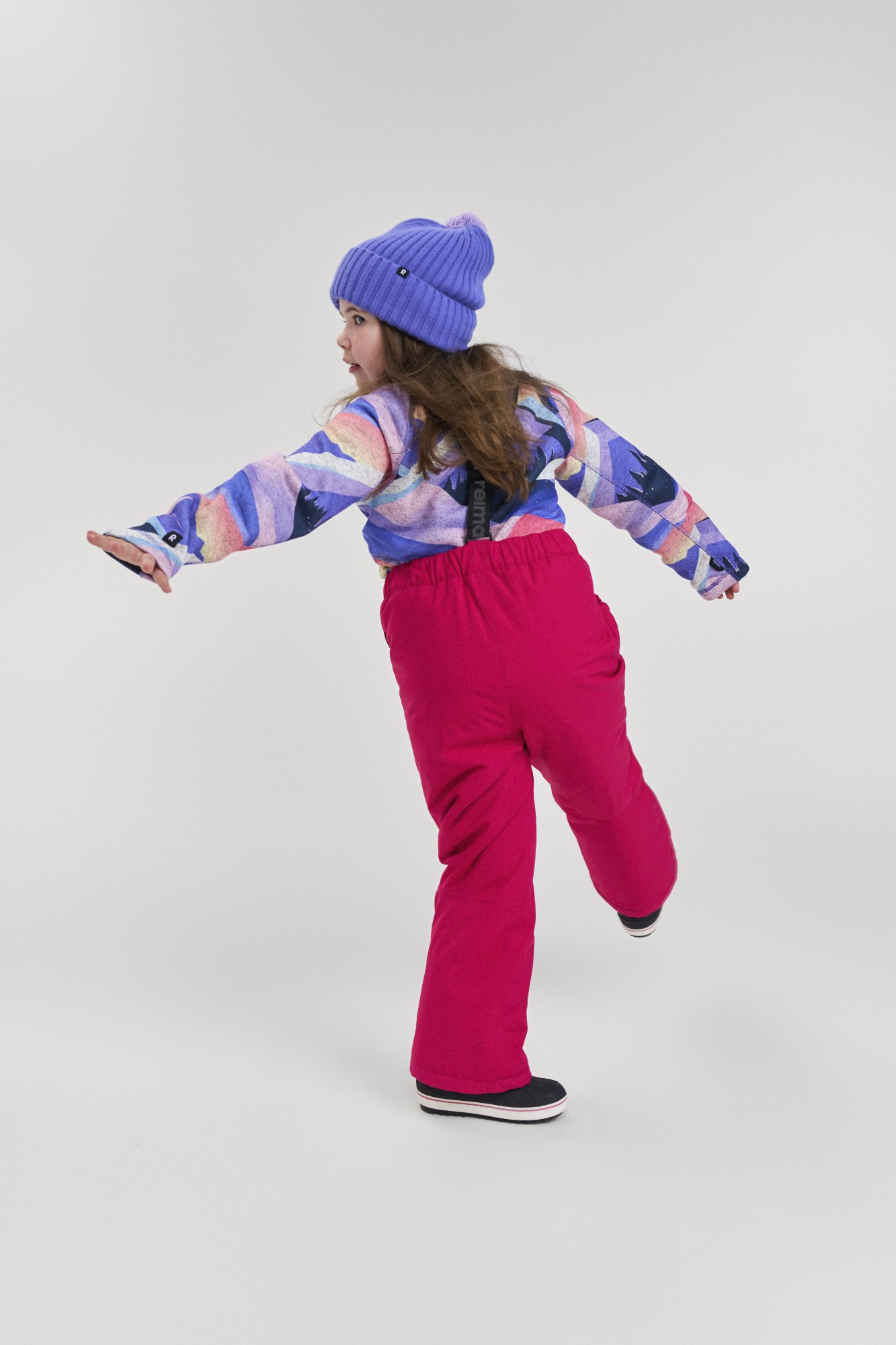 Reima® overalls have around 6 cm room for growth, allowing base and mid layers, too. If your child is close to 104 cm tall in the autumn and is of a thin or medium body type, a size 104 overall should fit comfortably through the winter. However, kids can grow in spurts, so sometimes a larger size may be a wise choice.