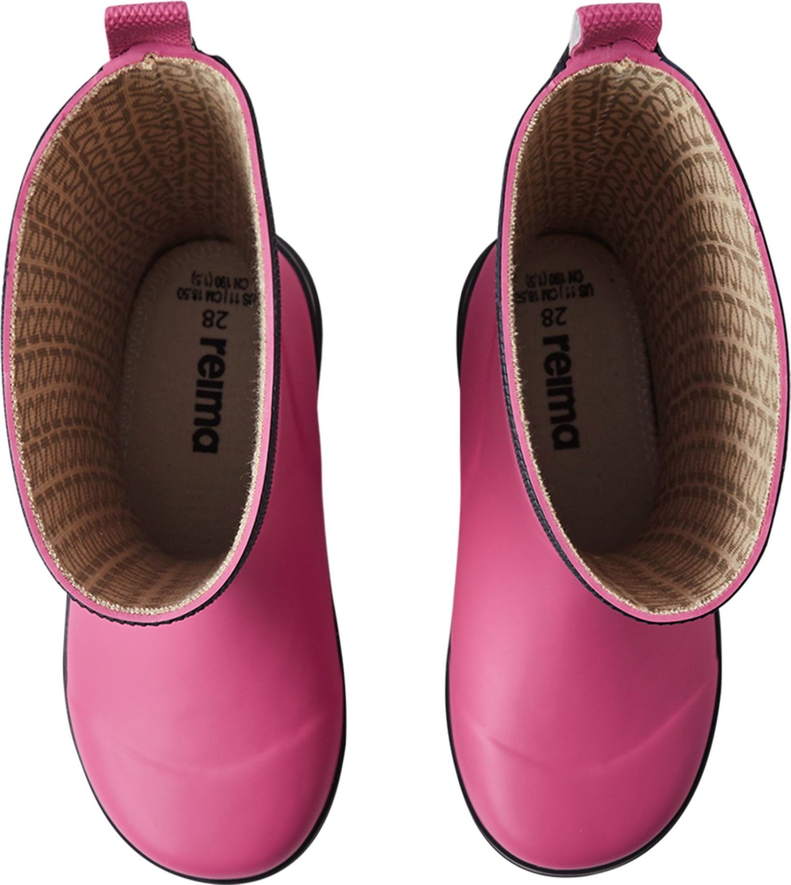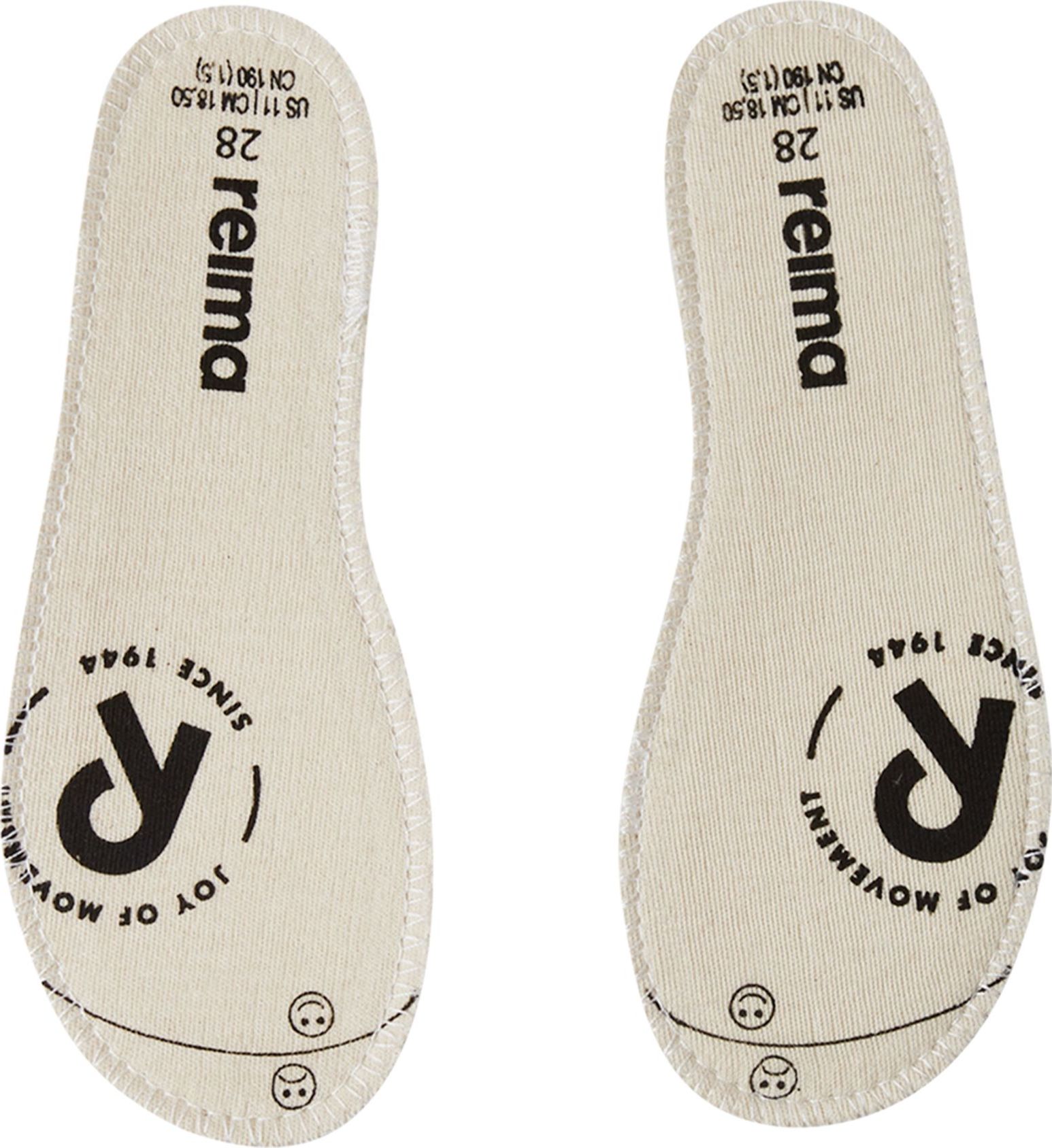Our classic kids' wellies with reflecting piping around the sole. These Reima rubber boots are made from a material that includes 40% natural rubber, and the outsole is crafted from a vulcanized PVC-free rubber. The children's rain boots are lined with cotton for comfort and include removable insoles with the Happy Fit print to help you find the correct size.